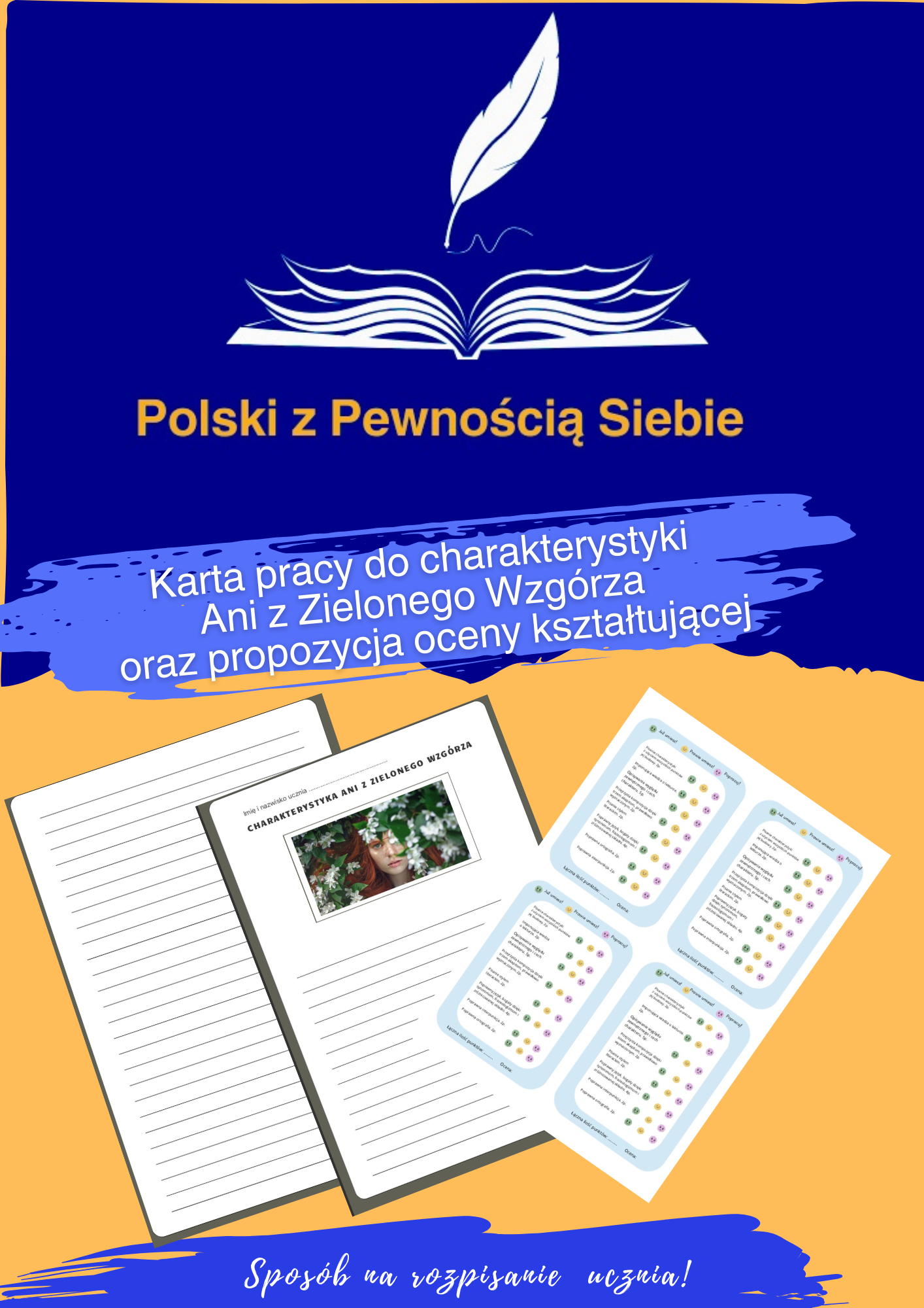 Materiał składa się z arkusza charakterystyki Ani z Zielonego Wzgórza w formie dwóch kart na wypracowanie oraz dodatku w postaci wyszczególnionych kryteriów oceny charakterystyki uwzględniającej obowiązek przekazania uczniowi informacji zwrotnej w postaci wskazania, co już umie, co sprawia mu jeszcze kłopot, a nad czym powinien popracować. Nauczyciel może wystawić ocenę w formie stopnia lub zostawić jedynie informację zwrotną.