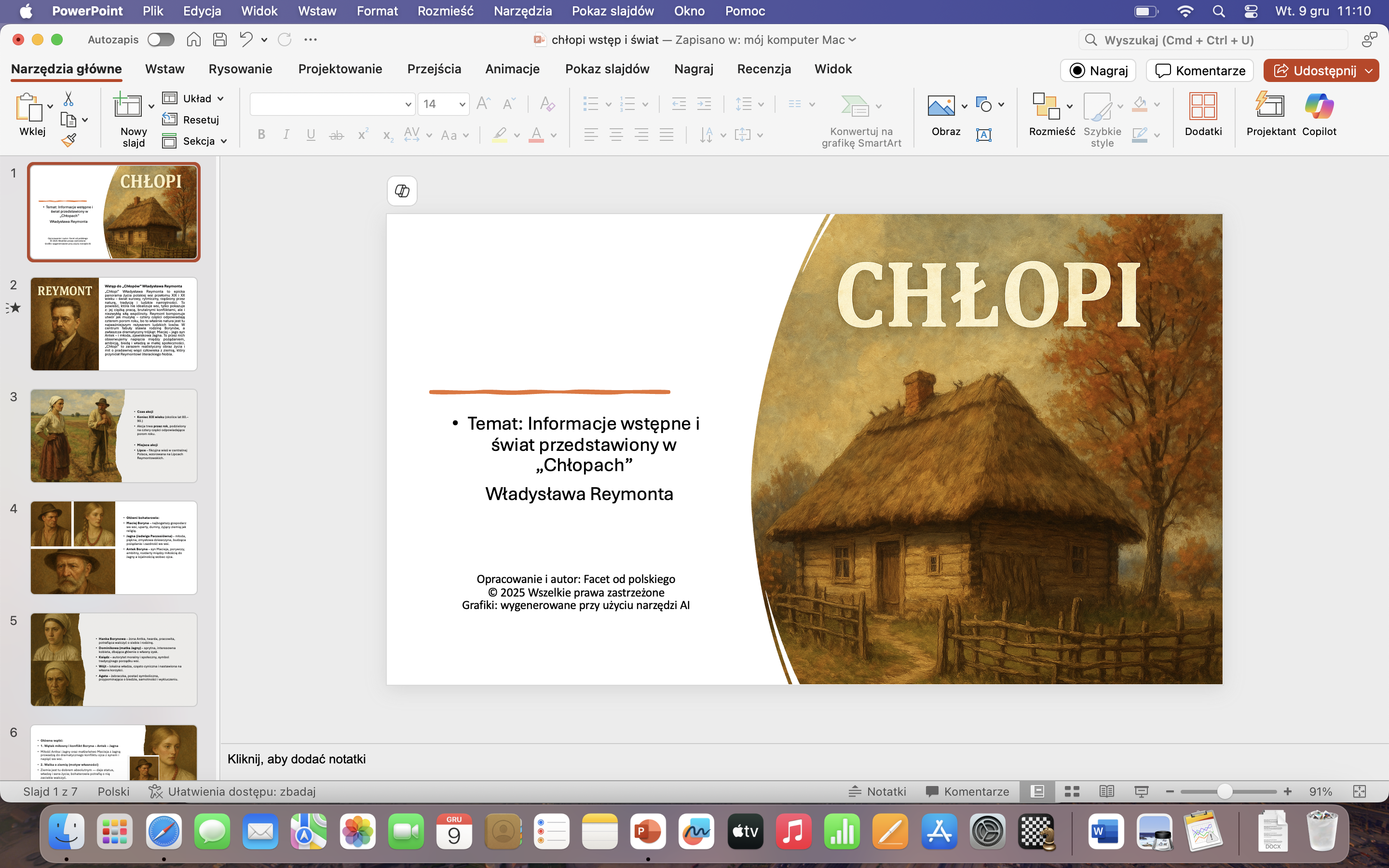 Przejrzysta i nowoczesna prezentacja do wykorzystania na lekcjach języka polskiego w szkole średniej. Materiał stanowi świetne wprowadzenie do powieści Reymonta, łącząc klarowną wiedzę z atrakcyjną oprawą graficzną.