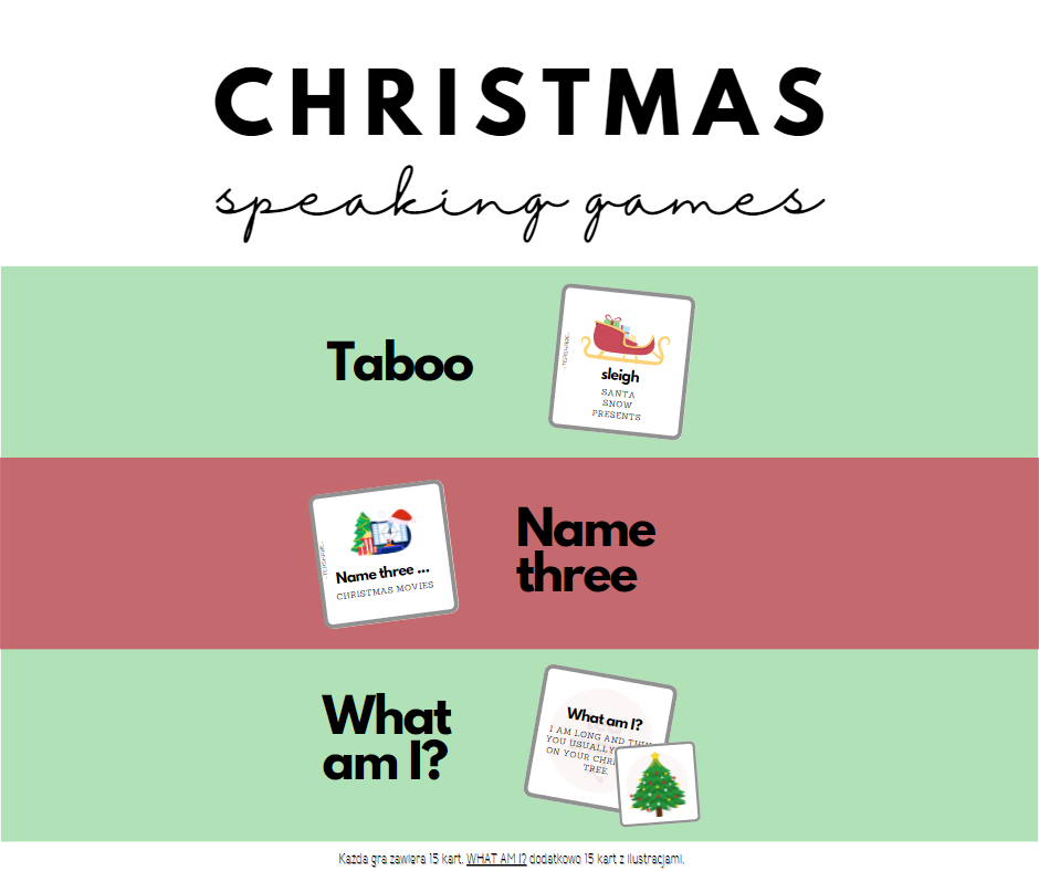 Nasz świąteczny zestaw składa się z trzech gier: Taboo, Name three oraz What am I?
