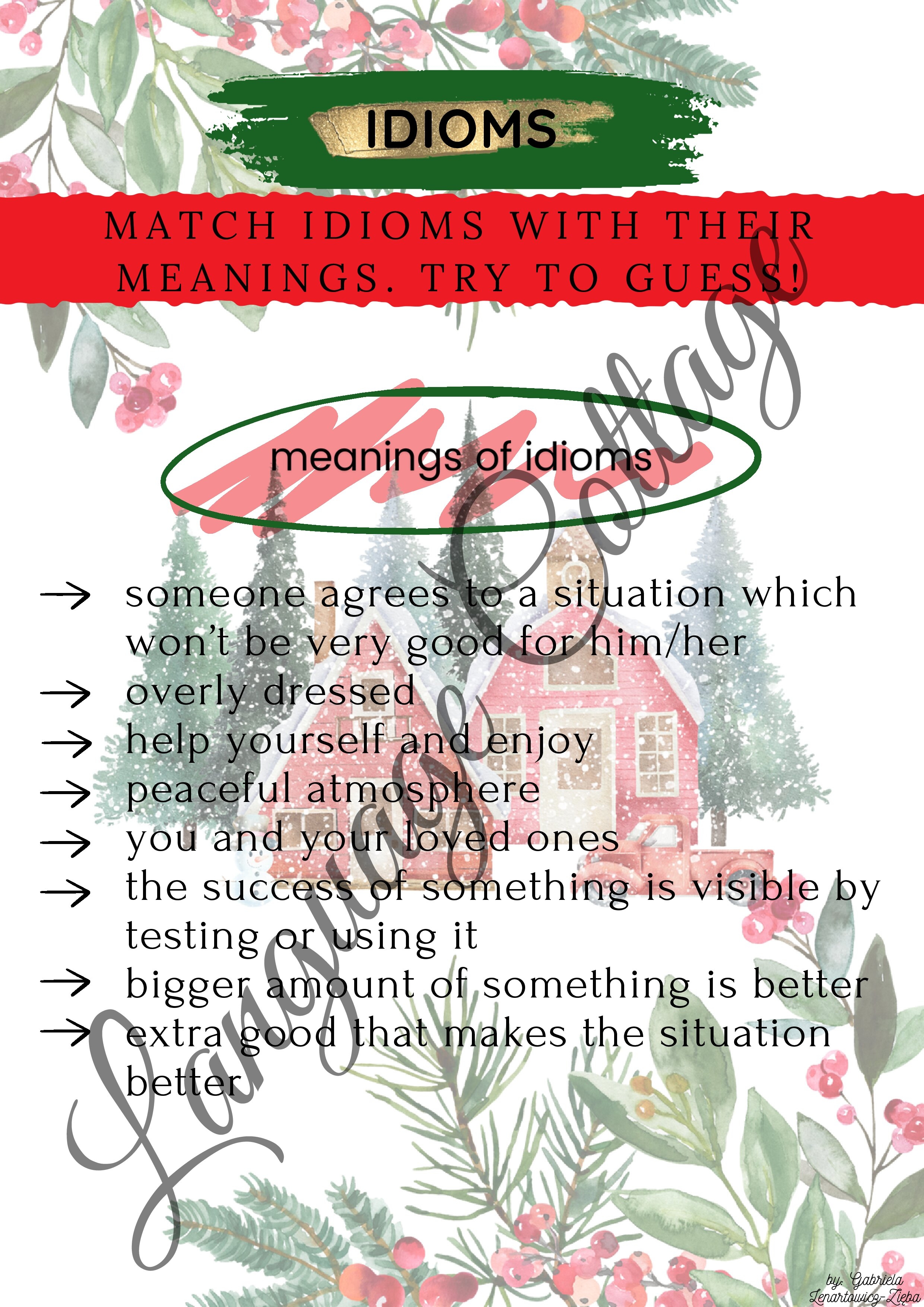 🎄 idiomy (ukryte w zdaniach) powiązane ze świętami Bożego Narodzenia oraz zadanie na odgadnięcie ich znaczeń