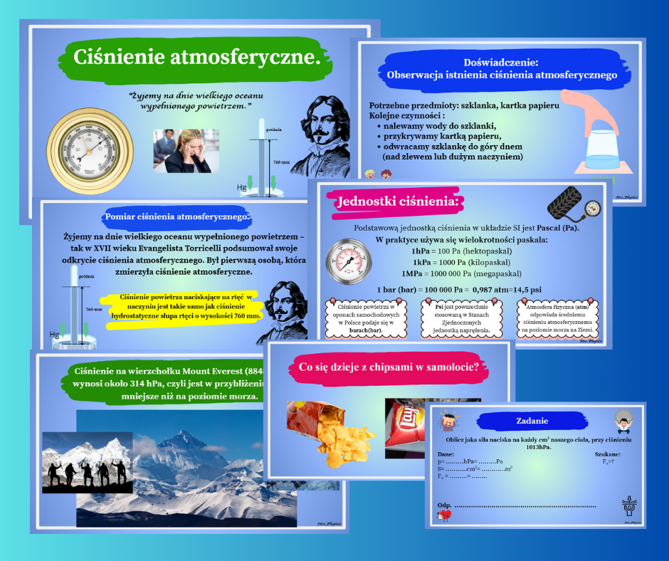 Całość pozwala przeprowadzić gotową, ciekawą i praktyczną lekcję o ciśnieniu atmosferycznym. Idealne wsparcie dla zapracowanych nauczycieli.