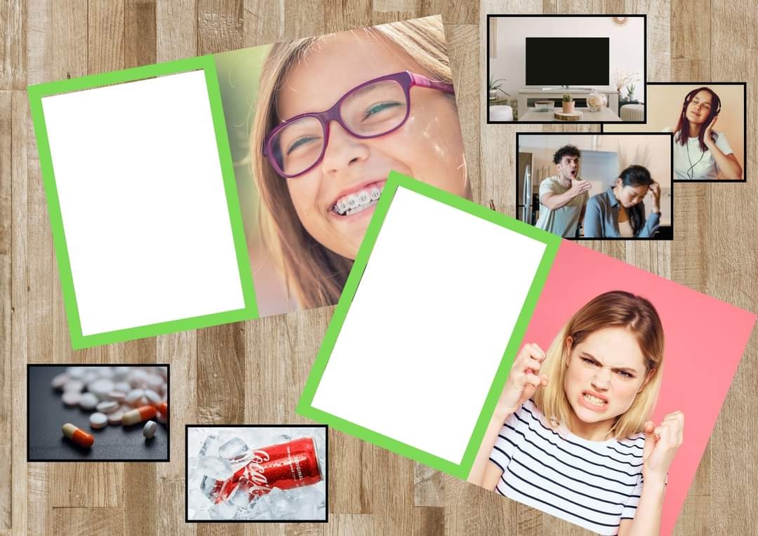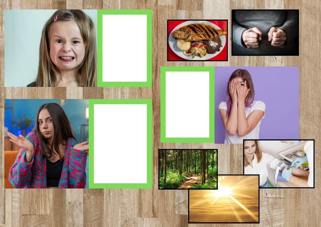 🟠8 fotografii prezentujących stany emocjonalne: lęk, radość, wstręt, smutek, złość, wstyd, zakłopotanie, obojętność;