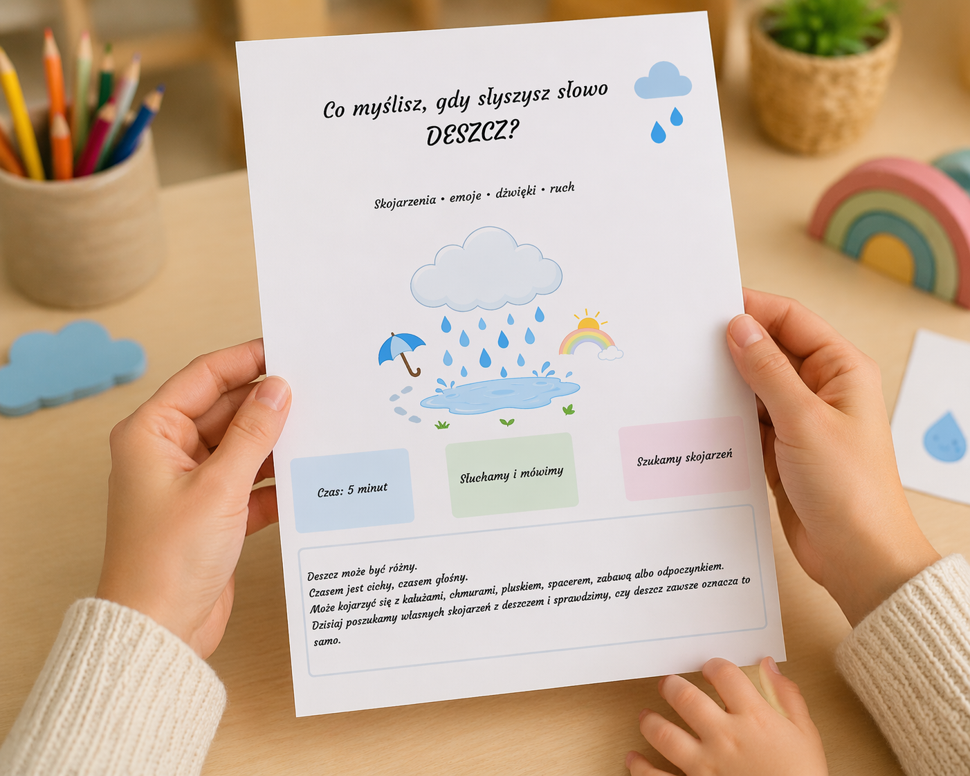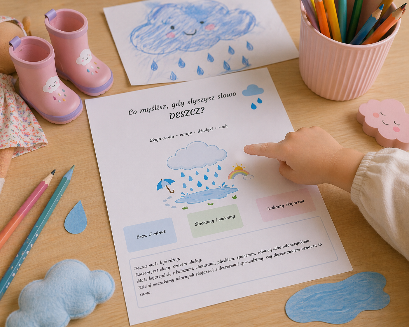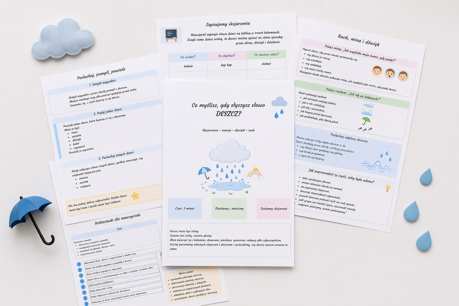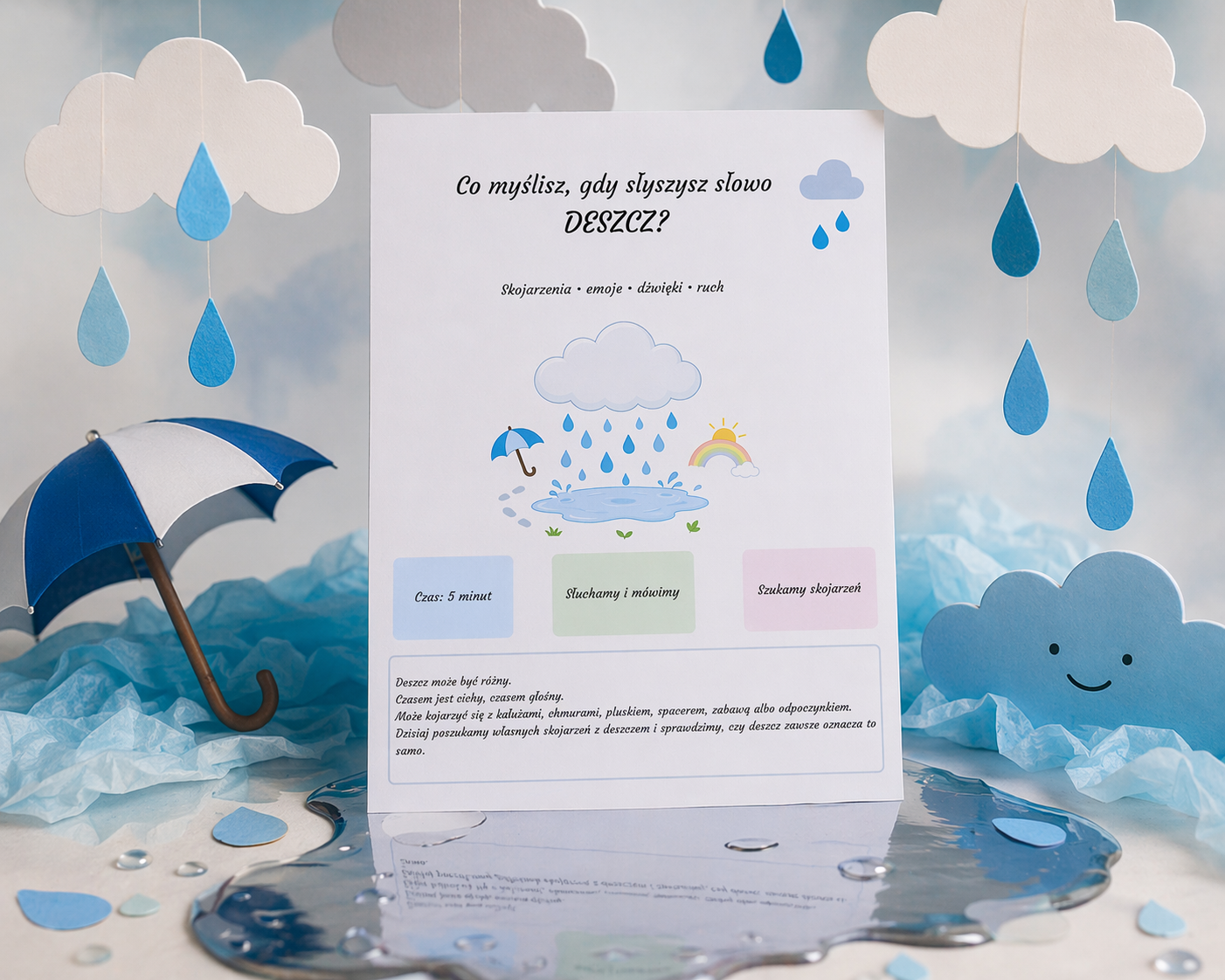 #edukacjawczesnoszkolna #przedszkole #nauczyciel #pomocedydaktyczne #materiałydlanauczycieli #deszcz #pogoda #skojarzenia #rozwójmowy #edukacjaprzedszkolna #zajęciadladzieci #emocje #uważność #naukaprzezzabawę #inspiracjedlanauczycieli
