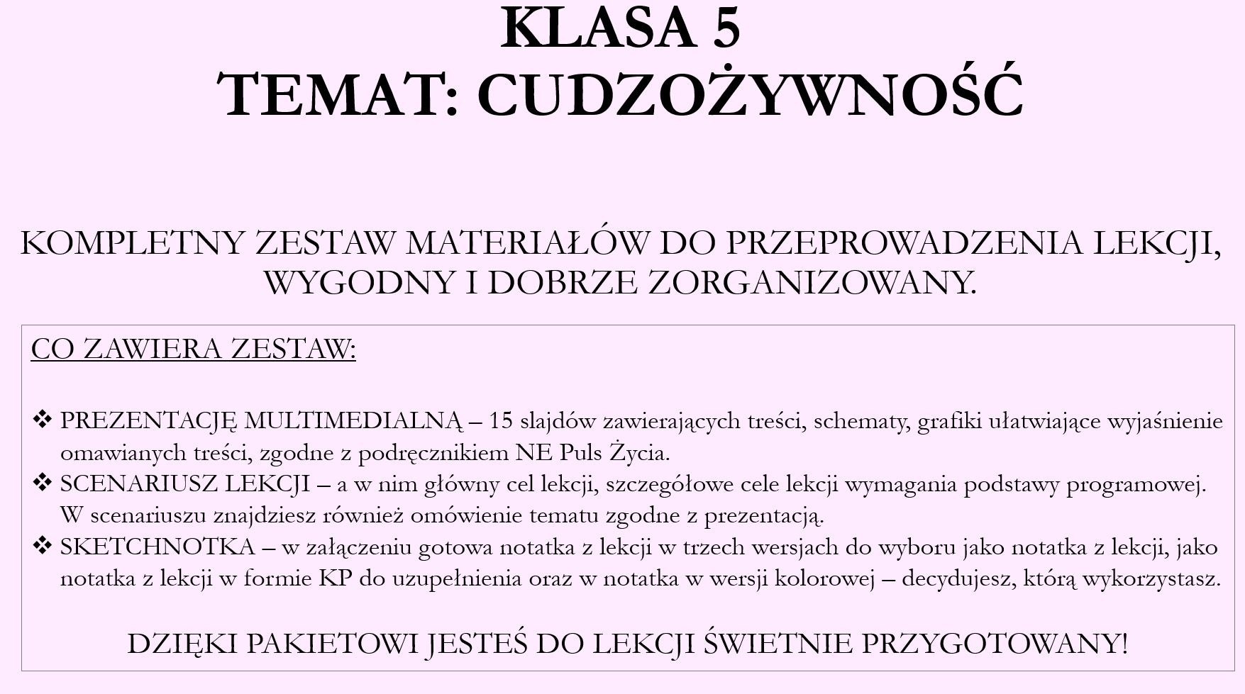 Jestem absolwentką Uniwersytetu Łódzkiego wydziału biologii. Biologia to jedna z nauk przyrodniczych, która ma dużo treści wspólnych z innymi naukami, dlatego ukończyłam również studia podyplomowe z przyrody i geografii. Obecnie uczę w szkole podstawowej tych trzech przedmiotów czyli biologii, przyrody i geografii. Wychodzę z założenia, że człowiek jako inteligentna część tego świata powinien poznać podstawy jego funkcjonowania. Od jakiegoś czasu fascynuje mnie sketchnoting. Rysuję notatki graficzne dla uczniów jako gotowe wklejki z lekcji bądź KP do uzupełnienia. Wierzę, że pomagają one w zrozumieniu przerabianego materiału. Tworzę również bazę materiałów dla nauczycieli. Wiem ile czasu wymaga kompletne przygotowanie prezentacji, kart pracy czy materiałów dodatkowych, dlatego też dzielę się tym z innymi. W materiałach dostępne są prezentacje, KP jako sketchotki albo gotowe do wklejenia albo jak KP do uzupełnienie, pokolorowania i wklejenia. Dostępne są /będą gotowe scenariusze lekcji, dzięki temu w bardzo krótkim czasie, można przypomnieć sobie najważniejsze kwestie i być świetnie przygotowanym do lekcji. Dodatkowo znajdziesz KP przygotowane w wordzie do edycji, możesz je zmieniać i modyfikować według własnych potrzeb. Decydując się na pakiet otrzymujesz komplet materiałów do konkretnej lekcji. Zyskujesz czas, który możesz przeznaczyć na inne aktywności. Zaczynam również tworzyć społeczność na Instagramie i Facebook biologia_podstawy.