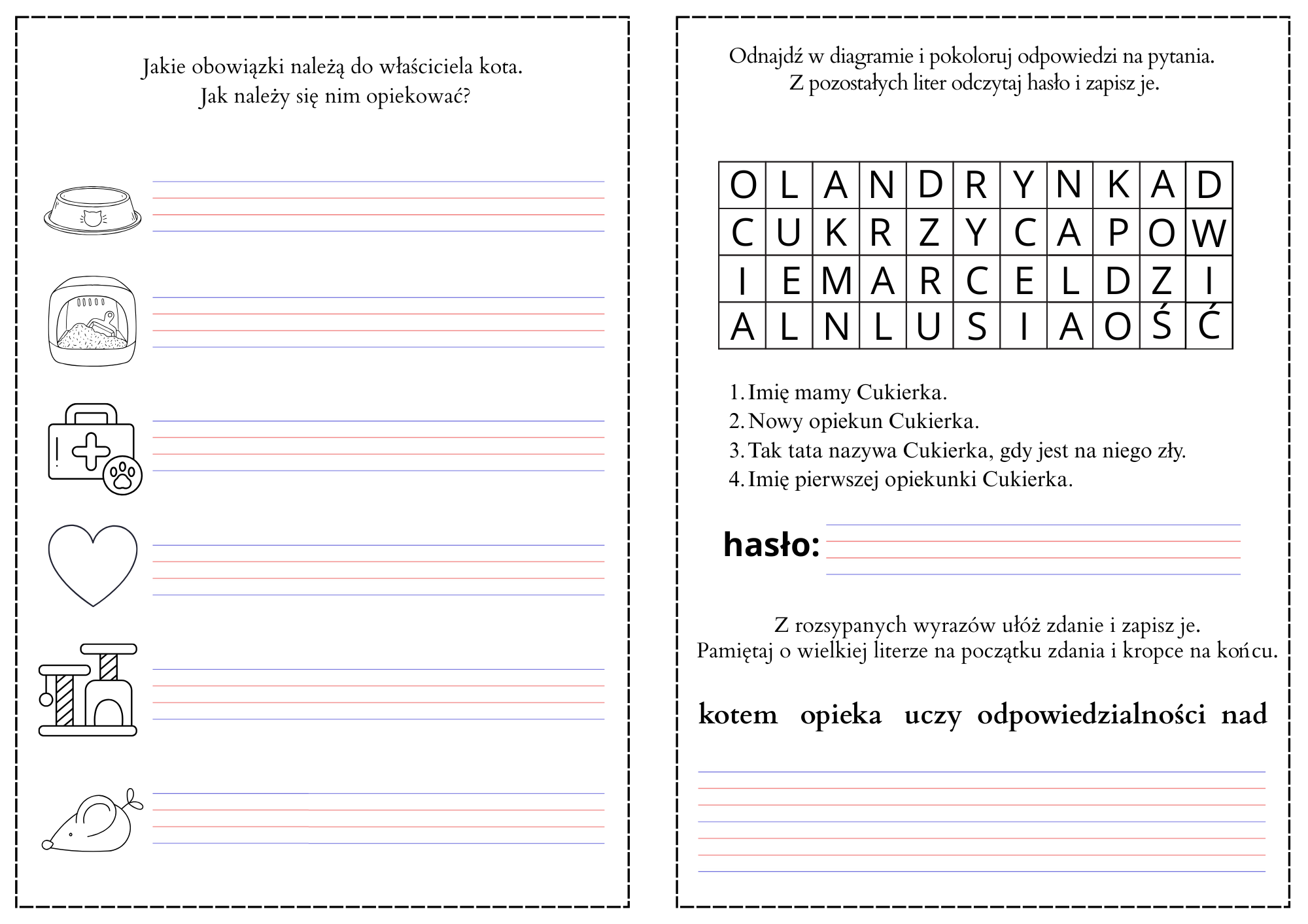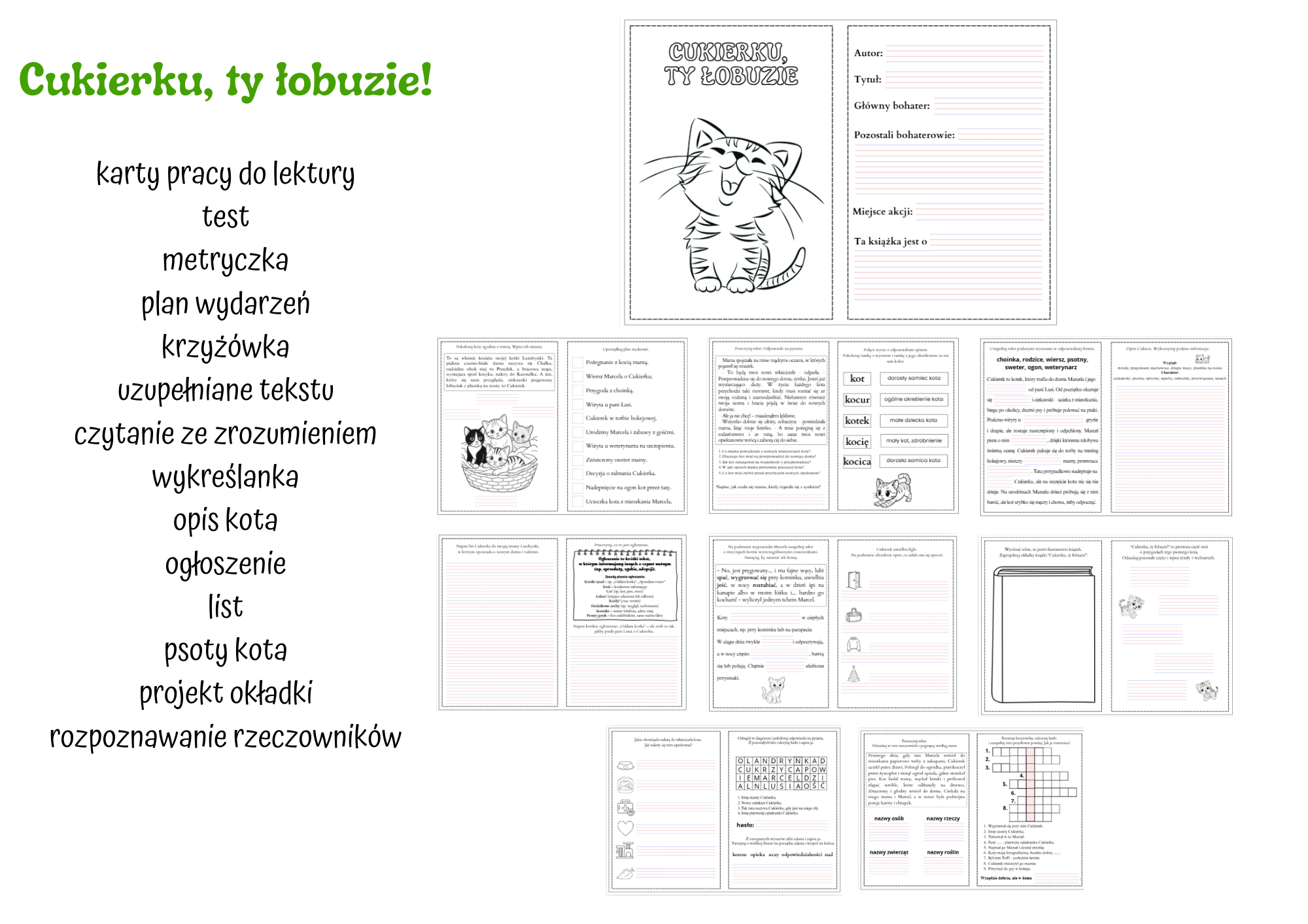 2 karty pracy na A4 ( łącznie 9 stron A4 + test)