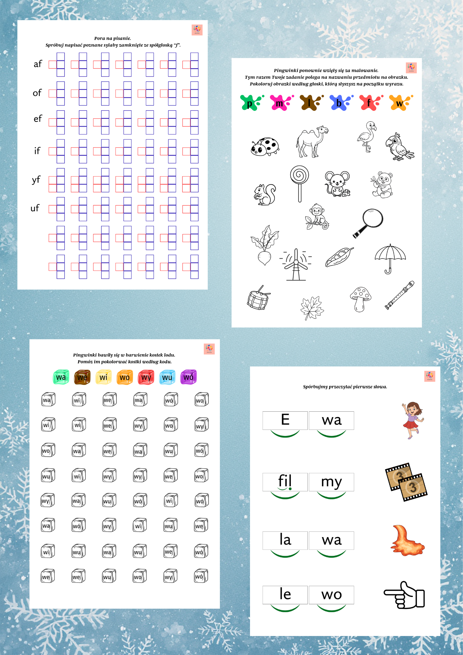 📘🐧 Zestaw edukacyjny – litery F i W 🐧📘