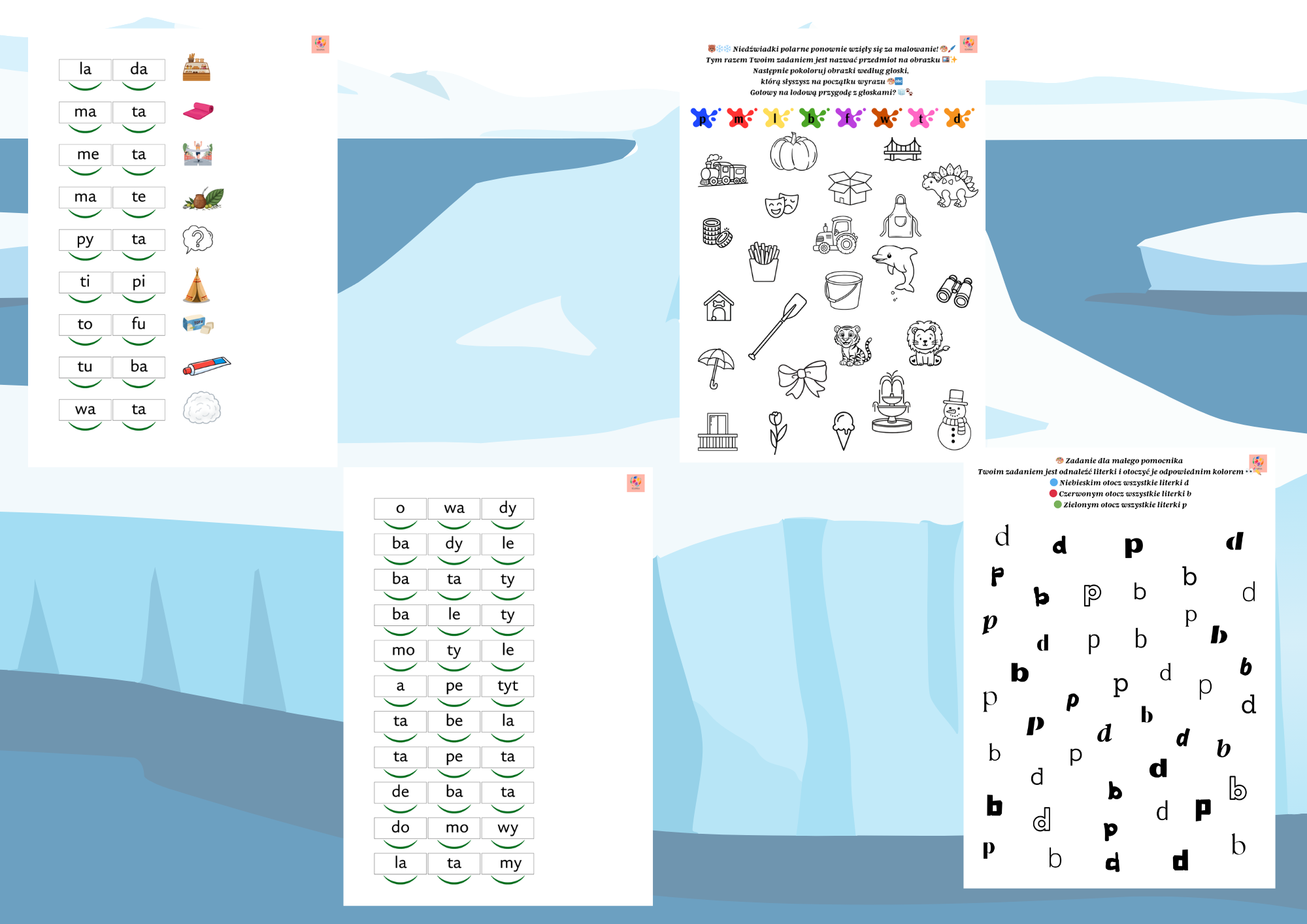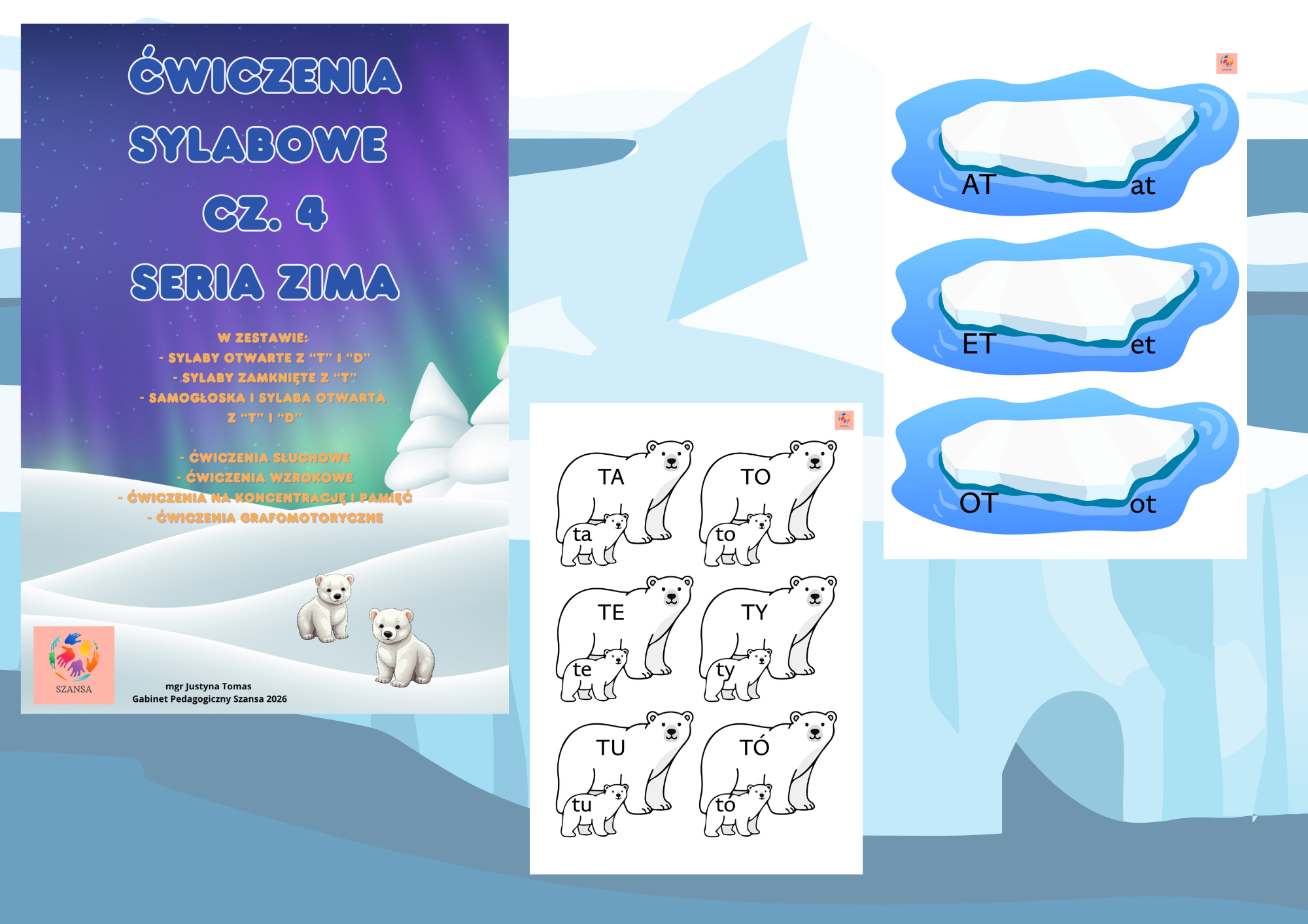 Zimowa odsłona pracy nad sylabami z głoskami T i D to świetna propozycja dla dzieci rozwijających mowę, czytanie i koncentrację. Nauka przez zabawę w towarzystwie uroczych niedźwiadków? Brzmi jak plan idealny! 🧊✨