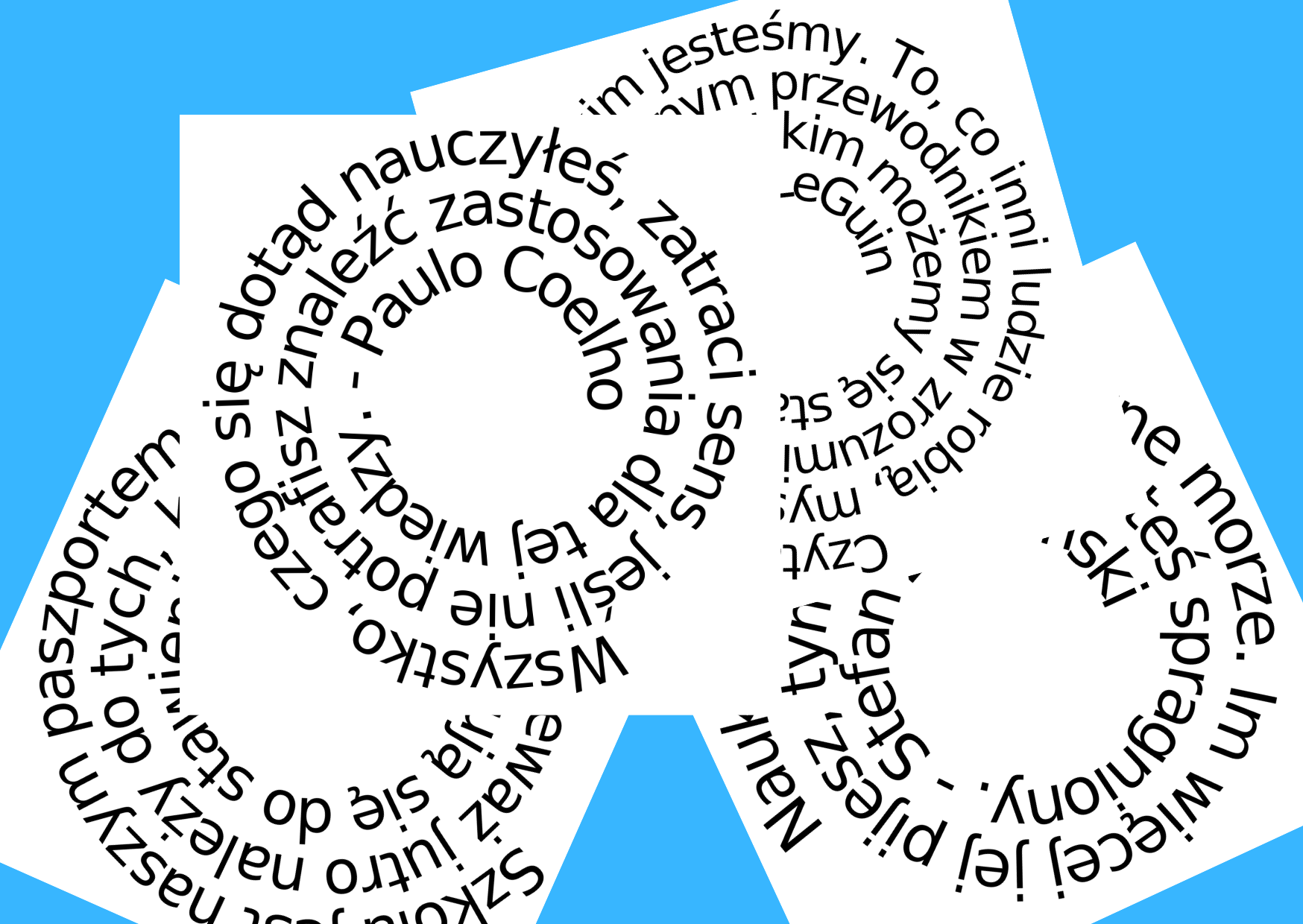 Zestaw zawiera 10 kartek A4 - 20 cytatów w formie spirali, które dotyczą szkoły, nauki i książek. Można je wykorzystać np. na pierwszych lekcjach języka polskiego - uczniowie odczytują cytaty i wyjaśniają ich przesłanie, komentują.
