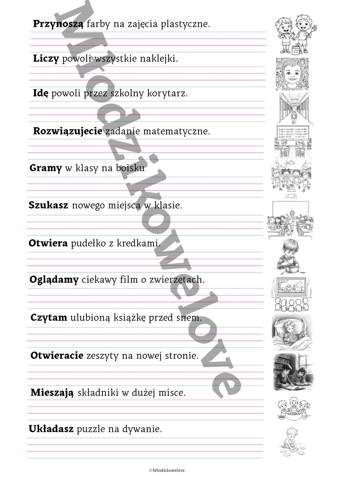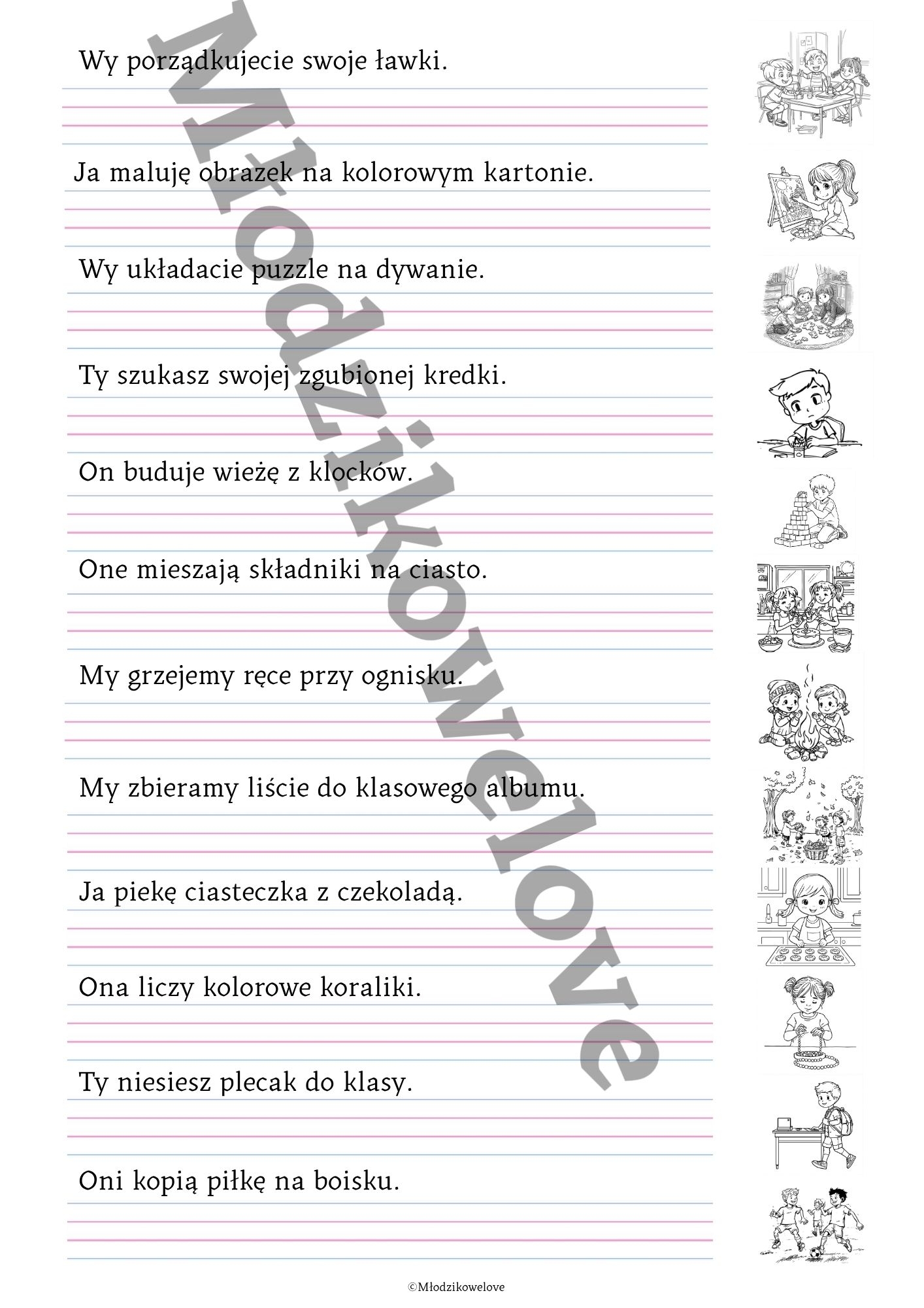 ✔️ oraz ze zdaniami bez zaimków, dzięki czemu uczniowie muszą samodzielnie rozpoznać, o jaką osobę i liczbę chodzi na podstawie formy czasownika.