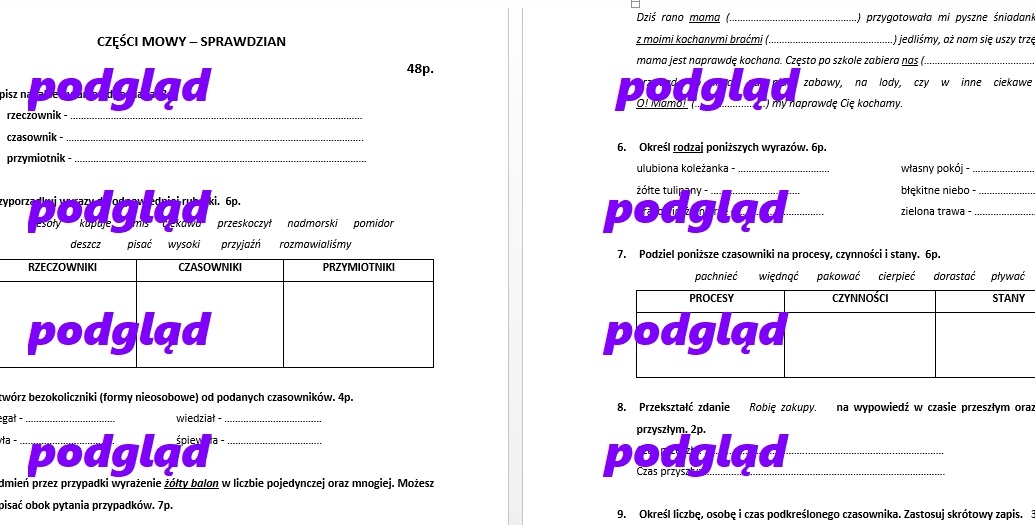 Materiał sprzedaję w formacie doc., więc możesz go edytować. Przed drukowaniem sprawdź czy zadania się "nie rozjechały" ze względu na ustawienia fabryczne szerokości marginesów.