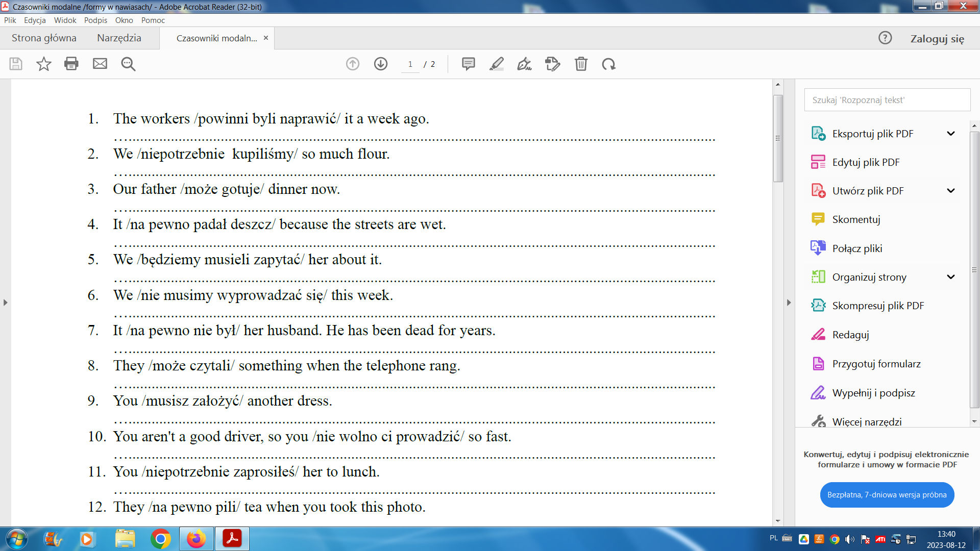 czasowniki modalne -ćwiczenia powtórzeniowe