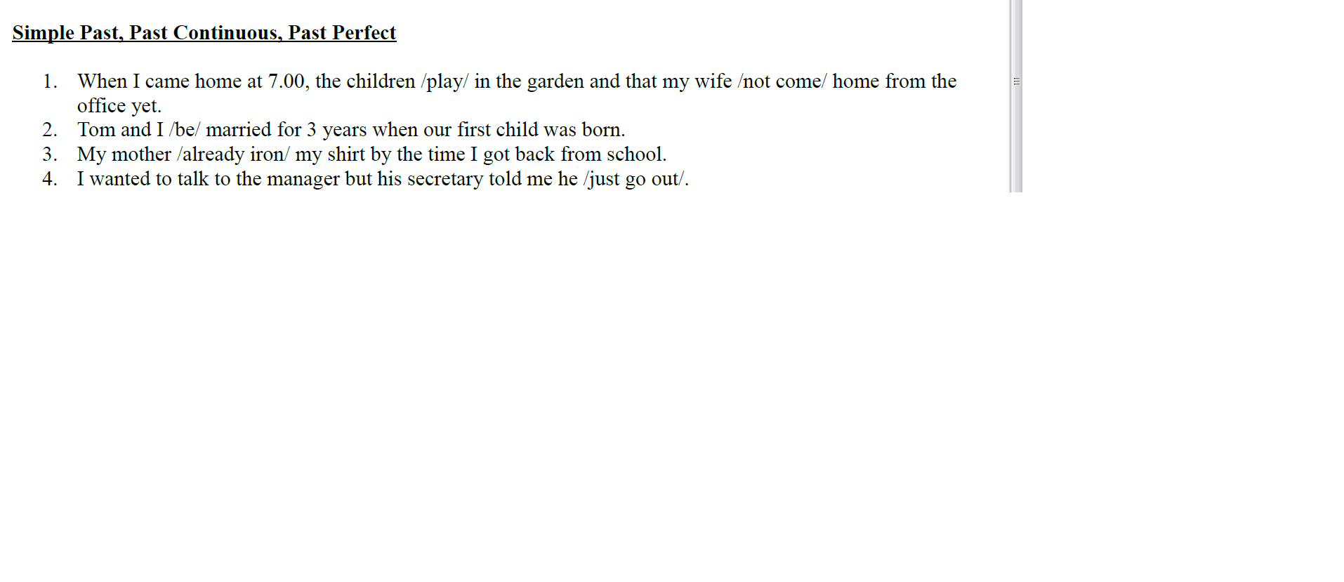Simple Past, Past Continuous, Past Perfect