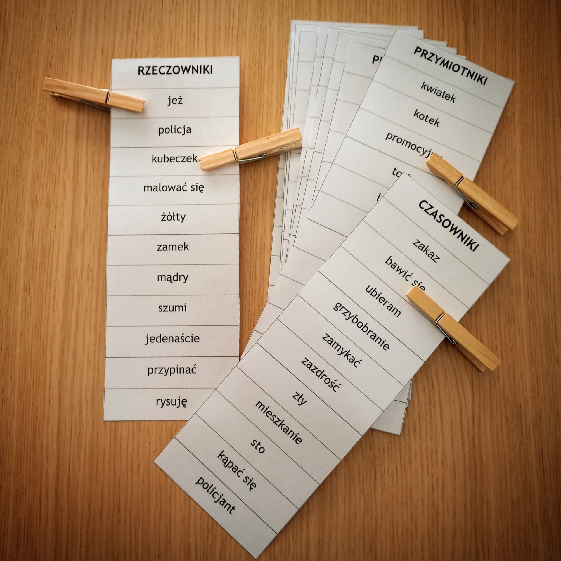 Zadanie polega na zaznaczeniu klamerką wyrazu danej części mowy, wskazanej na górze karty.