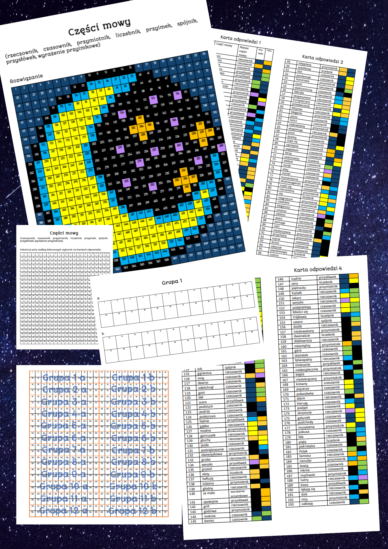 Części mowy - kolorowanka grupowa - nonogram XXL