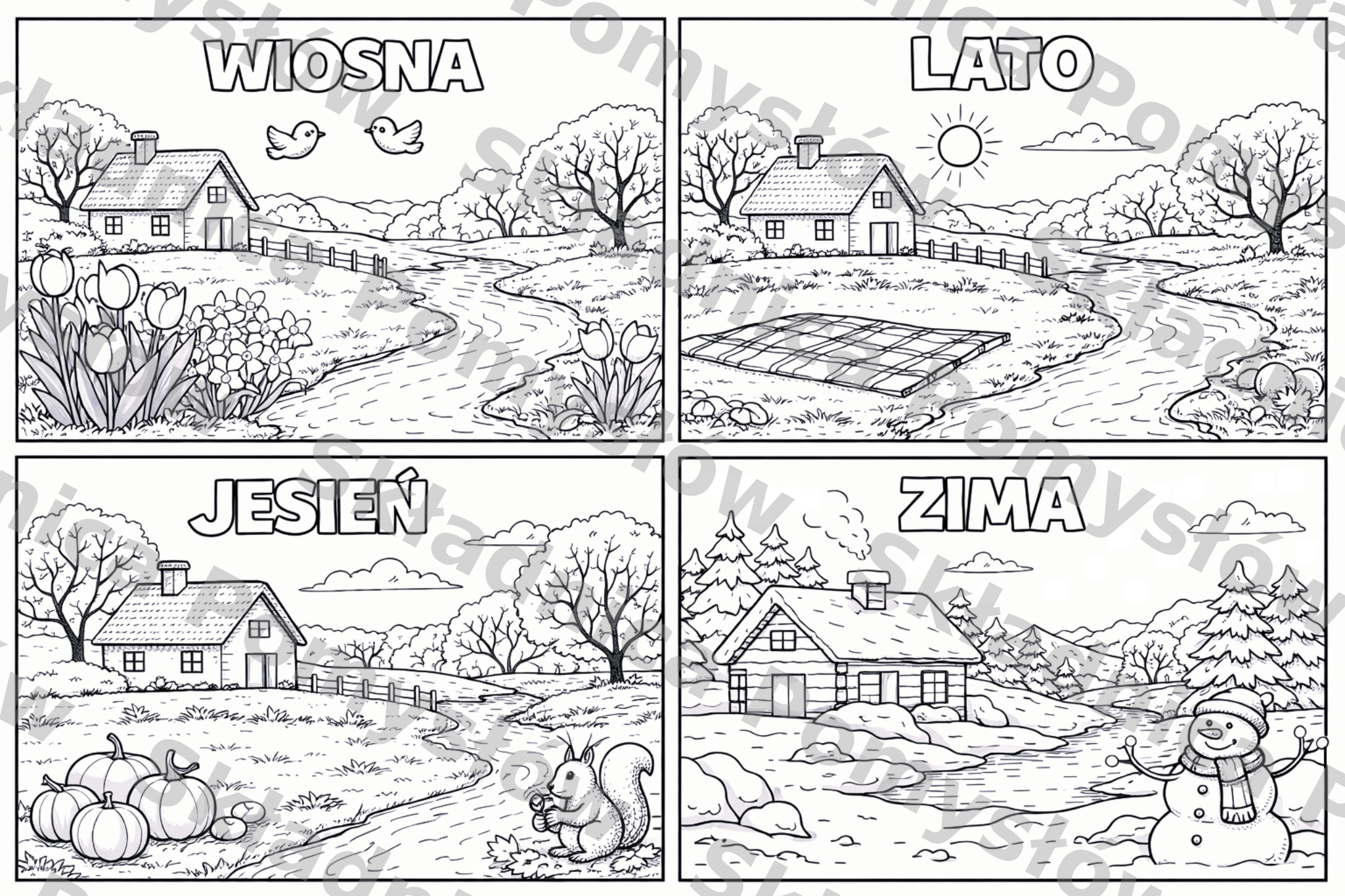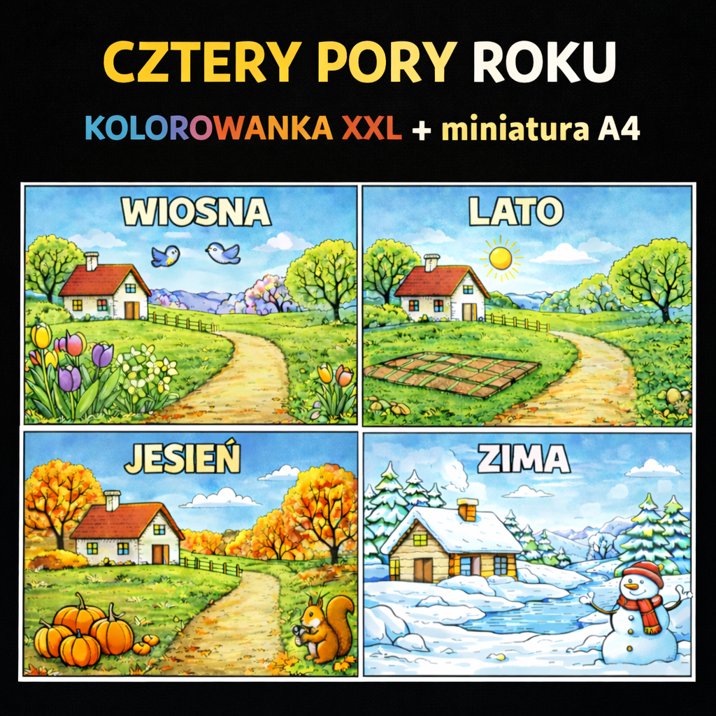 - 1 strona A4 – zbiorcza plansza z czterema porami roku