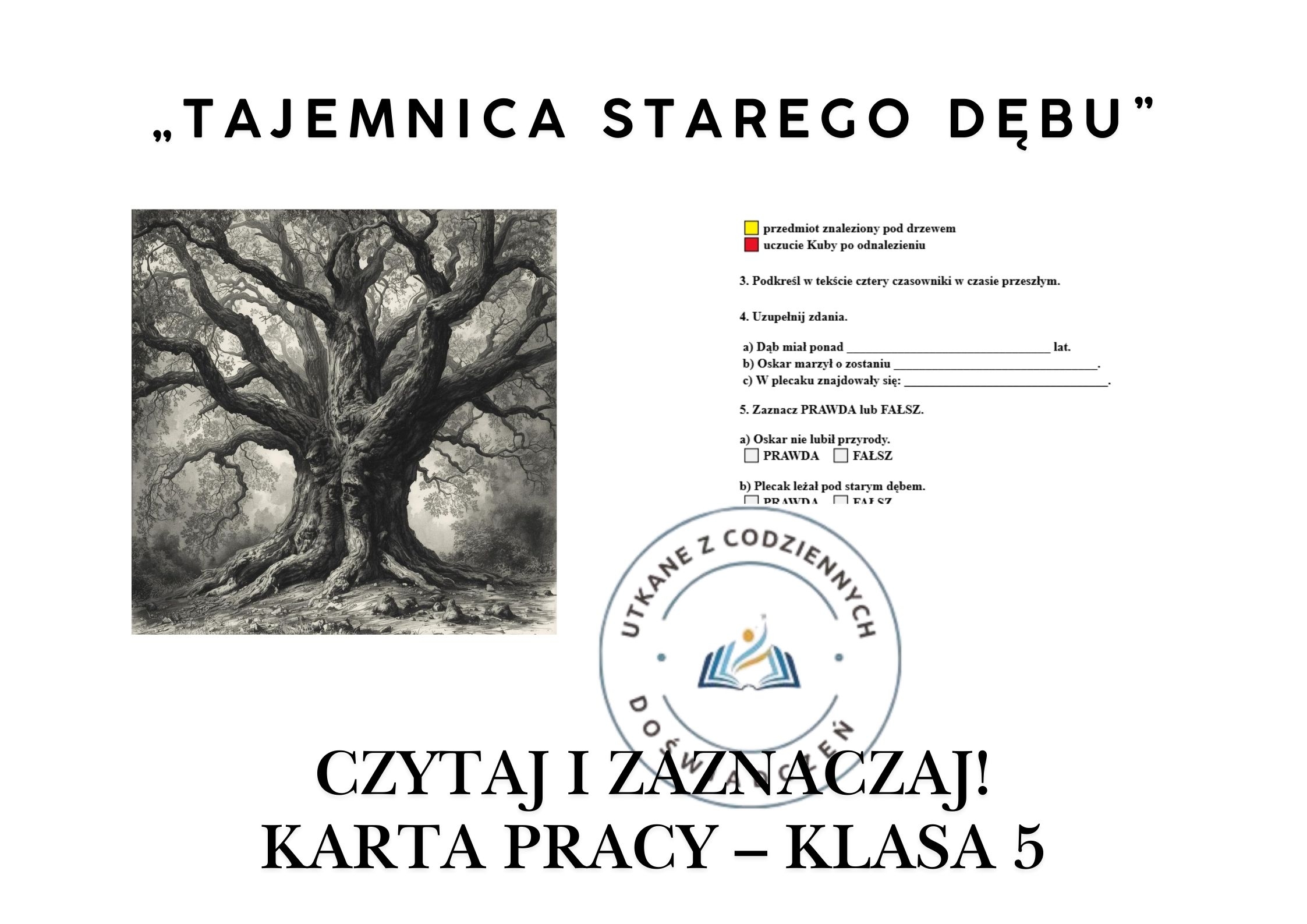 „Tajemnica starego dębu” to historia, która pokazuje, że nawet najmłodsi mogą zrobić coś naprawdę ważnego — i że dobro wraca. Ta karta pracy pomaga to zrozumieć, przeżyć i nazwać.