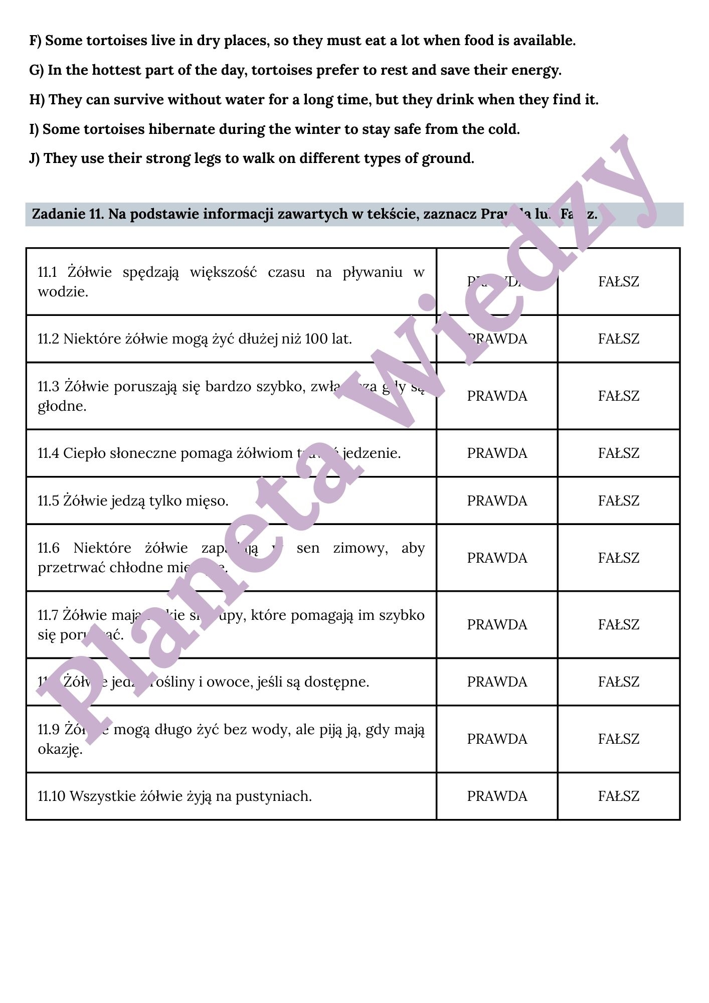 Prawda/Fałsz – uczniowie decydują, czy zdania są zgodne z treścią tekstu. ✔️❌