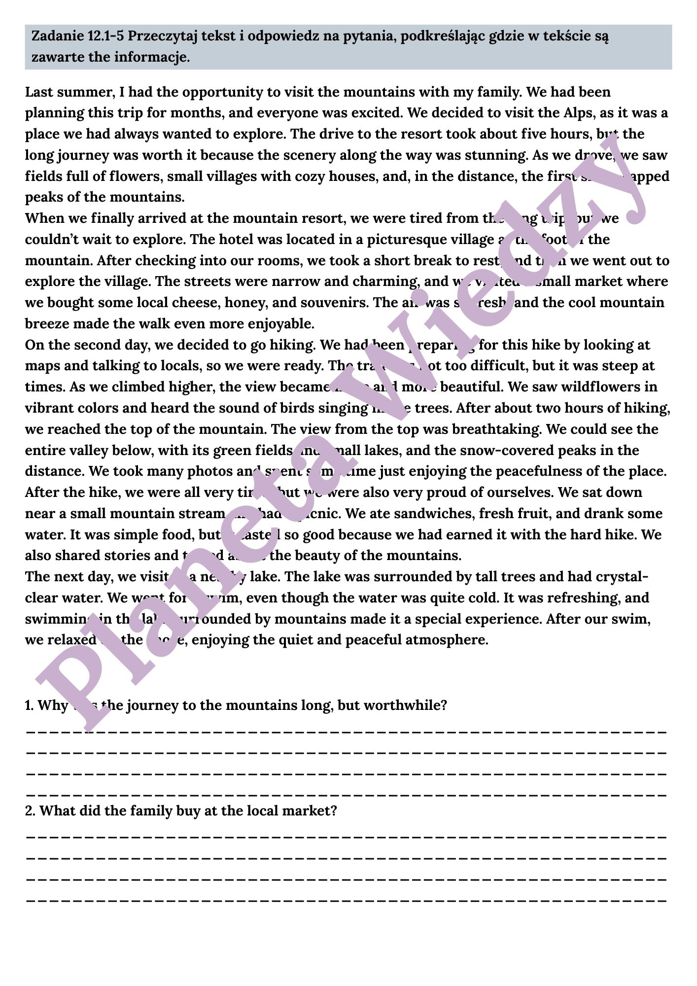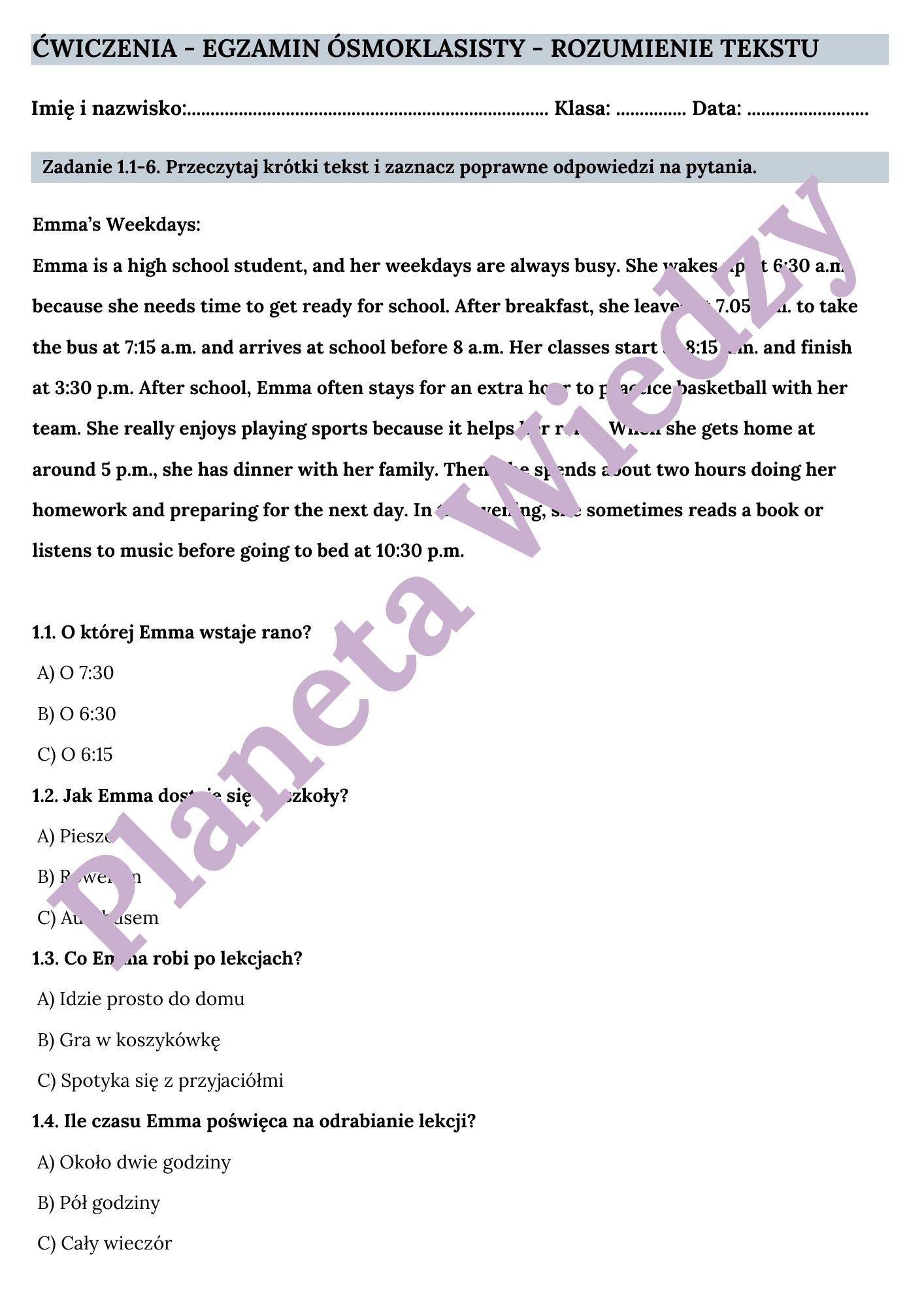 W zestawie znajdziesz różnorodne zadania podobne do zadań egzaminacyjnych, które pomogą w rozwijaniu umiejętności rozumienia tekstów: