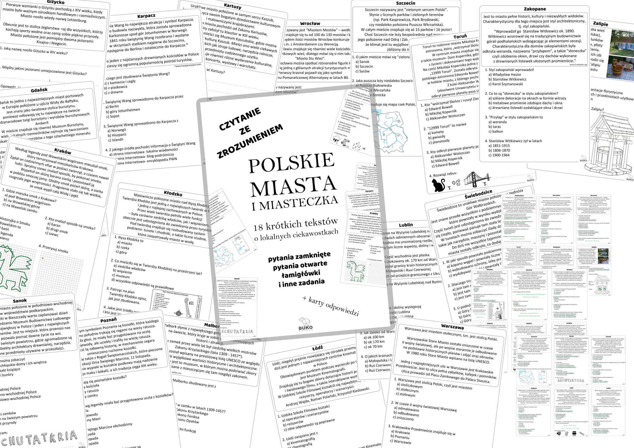 18 krótkich tekstów o lokalnych ciekawostkach lub informacjach dotyczących miast,