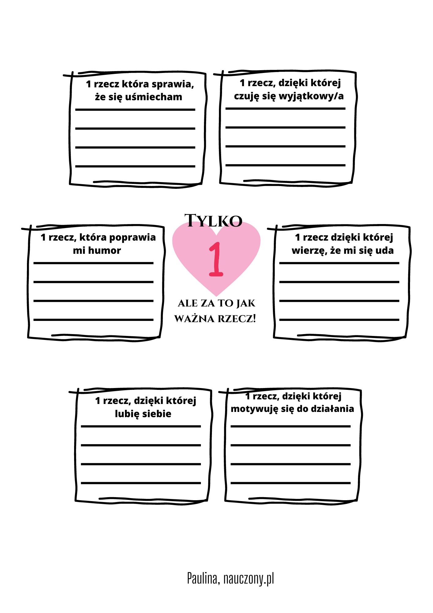 Praca nad poczuciem własnej wartości nie jest łatwa. Jeżeli znalazłeś/aś się na mojej stronie oznacza to dla mnie jedno - jesteś osobą, dla której samodoskonalenie jest istotną wartością. Wszystkie moje produkty mają za zadanie wspierać zarówno Ciebie, jak i osoby z którymi pracujesz na codzień. Przygotowując materiały dbam o to, żeby były oryginalne, kreatywne oraz odpowiadały na najważniejsze pytania. Jestem zdania, że nie ma piękniejszej pracy, niż praca nad sobą. Osoby, które lubią siebie mają ogromną moc, którą zarażają innych. Chciałabym, żeby było nas więcej i problem z niską samooceną nie był tak bardzo powszechny. Ja już dołożyłam swoją cegiełkę. Teraz czas na Ciebie!