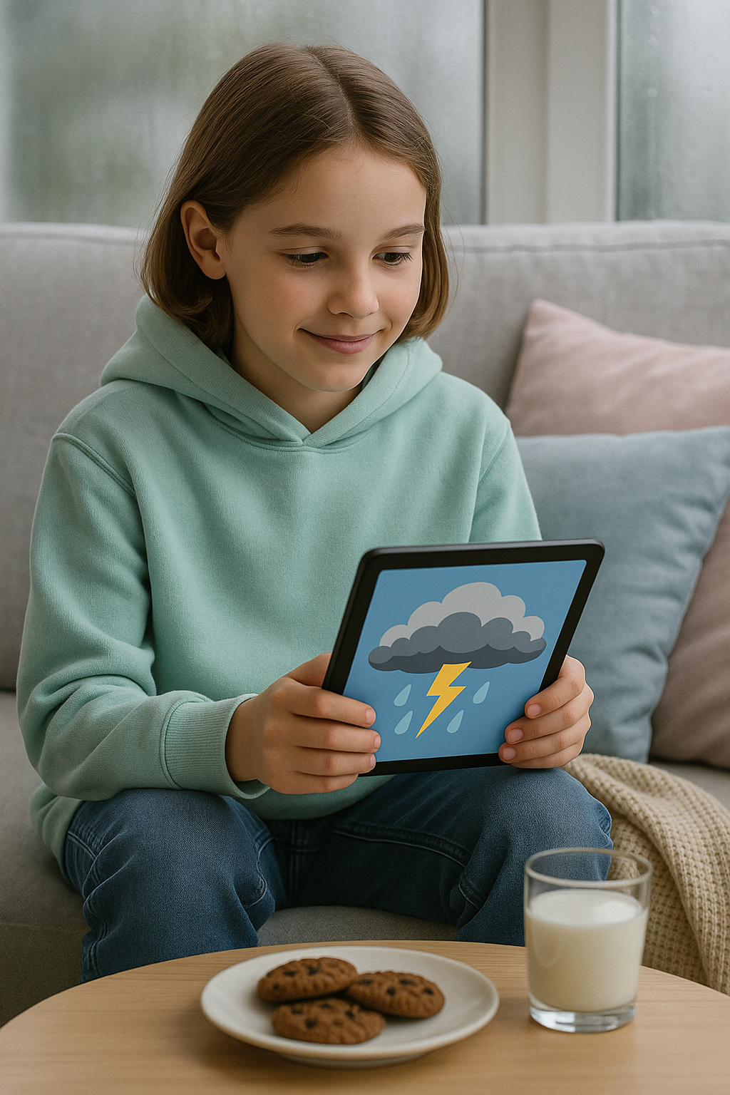 Nauczysz się, jak postępować w czasie burzy, jakich miejsc unikać i co zrobić z urządzeniami elektrycznymi. 📵🌩️