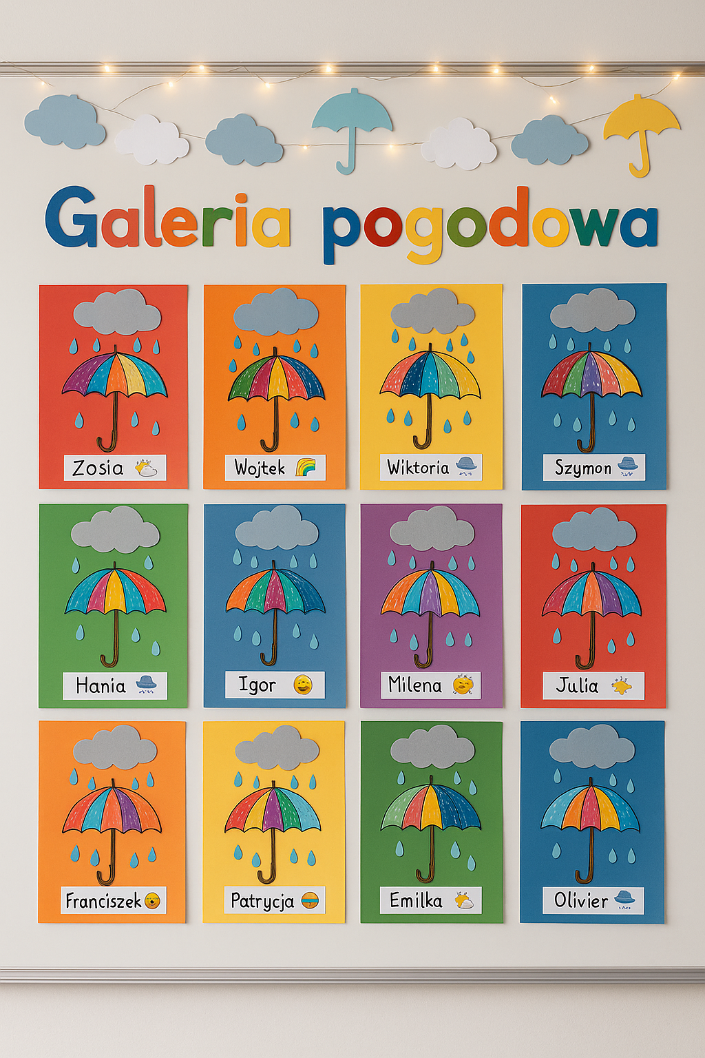 Uczniowie tworzą swoje parasole i wystawiają je w klasowej galerii 🌂