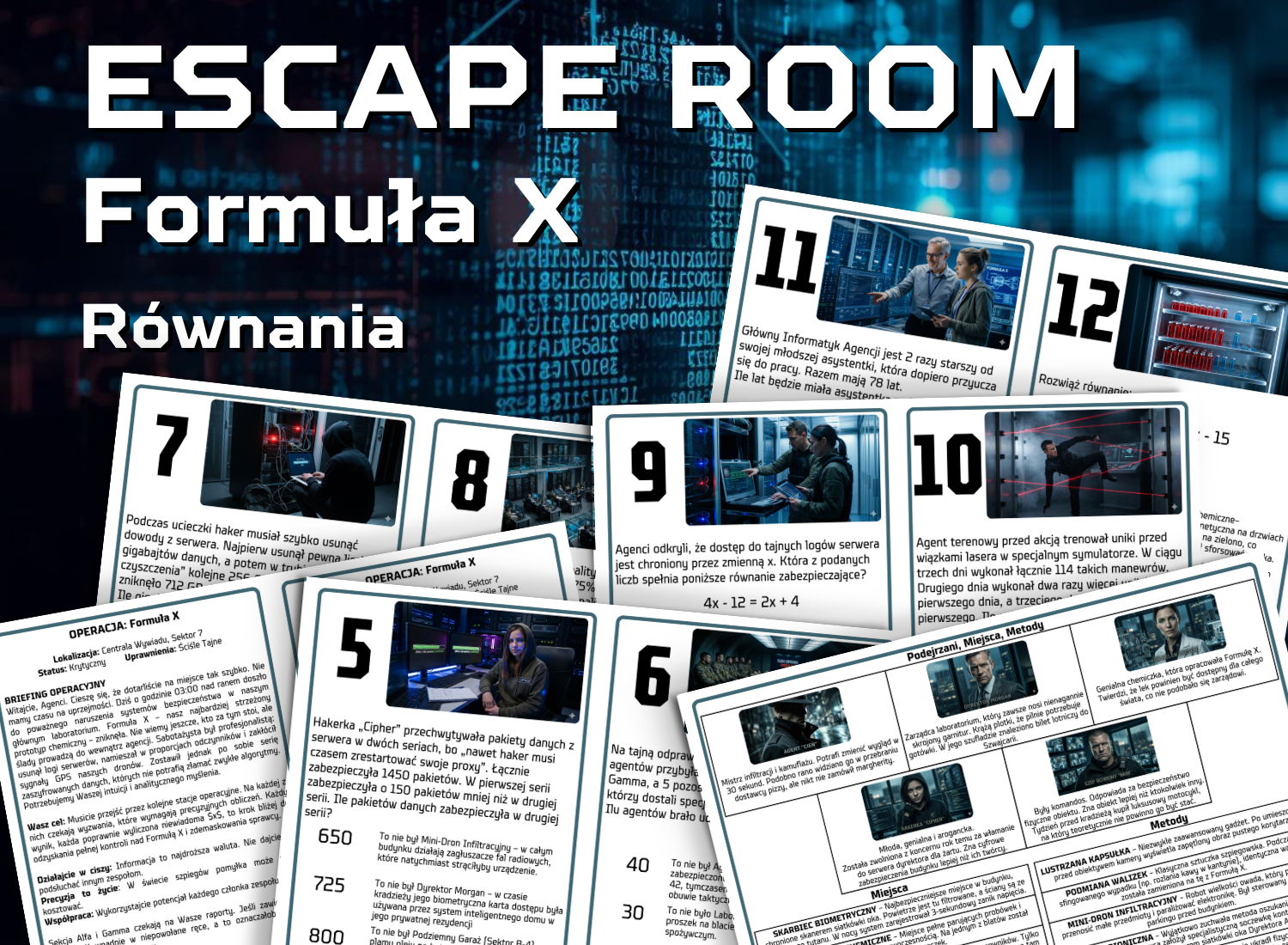 Poczujcie dreszczyk emocji rodem z najlepszego escape roomu, połączony z dynamiką stacji zadaniowych! Szukasz sposobu, aby Twoi uczniowie z prawdziwym zaangażowaniem rozwiązywali zadania? Ten materiał to hybryda idealna – łączy w sobie fabularną tajemnicę i dedukcję znaną z pokojów zagadek z aktywną formą przemieszczania się po klasie. To gotowy przepis na emocjonującą lekcję matematyki, w której równania stają się kluczem do rozwiązania wielkiej tajemnicy!