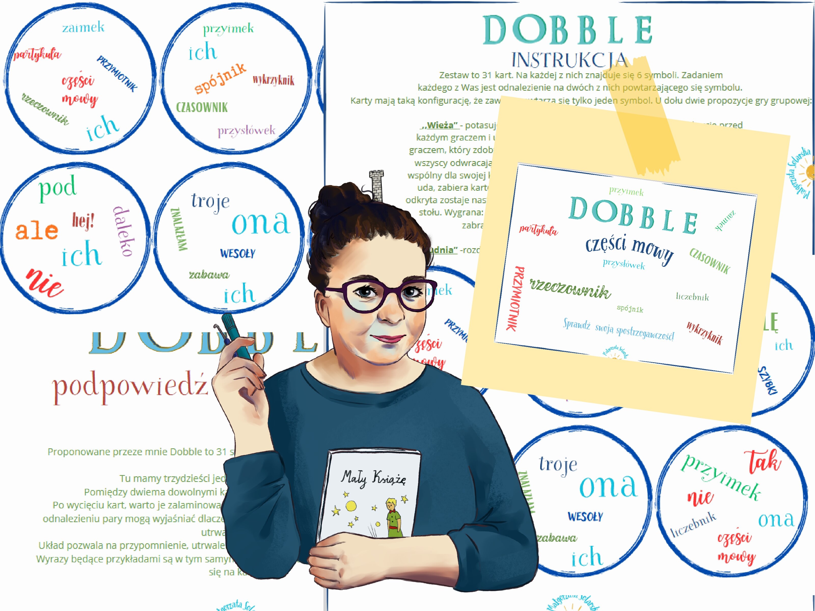 Proponowane przeze mnie Dobble to 31 symboli z odmiennych i nieodmiennych części mowy .