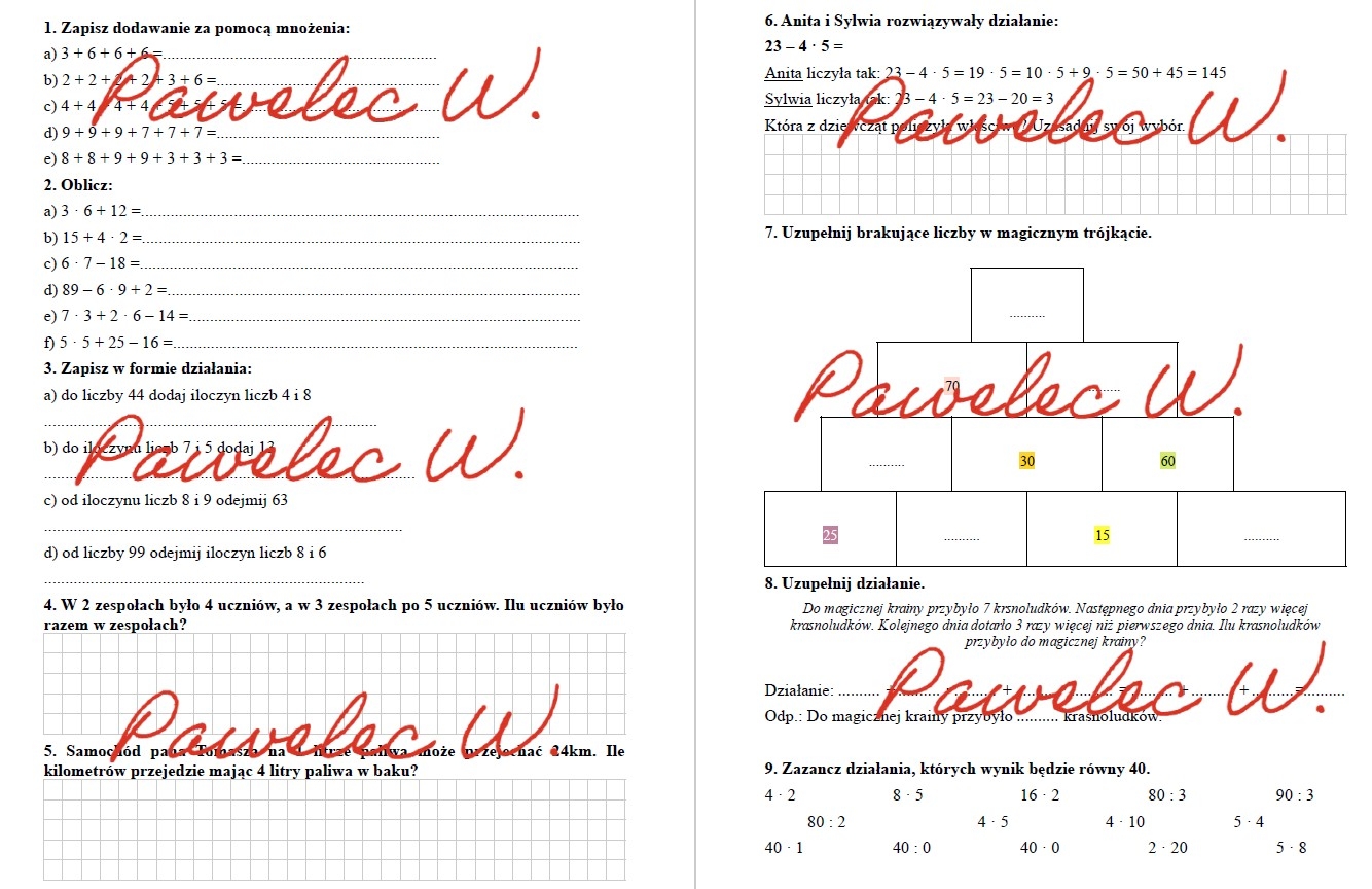 Karta pracy idealna do sprawdzenia umiejętności z zakresu dodawania i mnożenia w kl. 3 i 4.