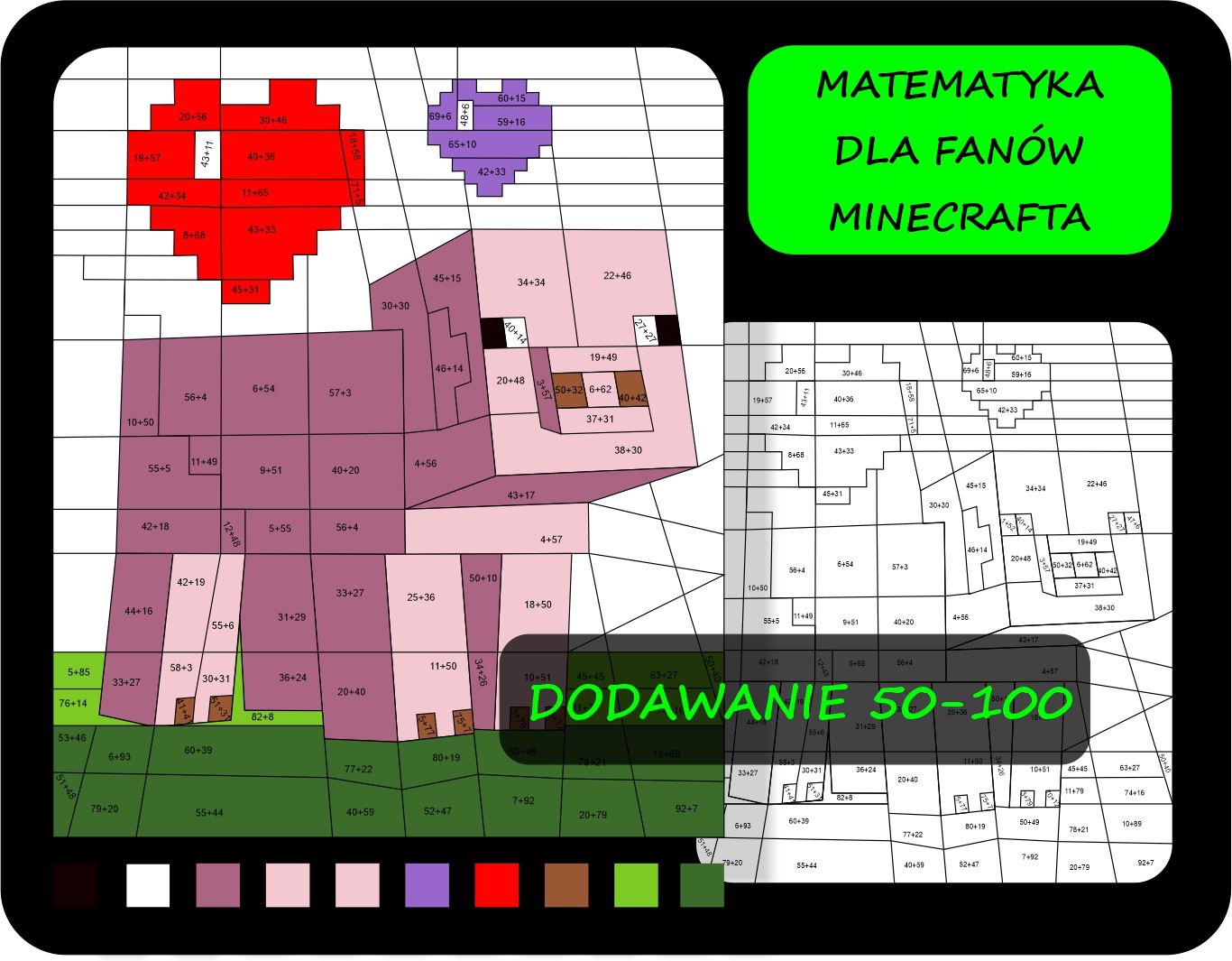 Ta karta pracy łączy matematyczną gimnastykę umysłu z kreatywną zabawą! Uczniowie rozwiązują proste działania z zakresu dodawania w przedziale 50-100, a następnie kolorują odpowiednie pola zgodnie z legendą. Po poprawnym uzupełnieniu pojawi się dobrze znana postać ze świata Minecrafta, co dodatkowo motywuje dzieci do pracy i wzbudza ciekawość.