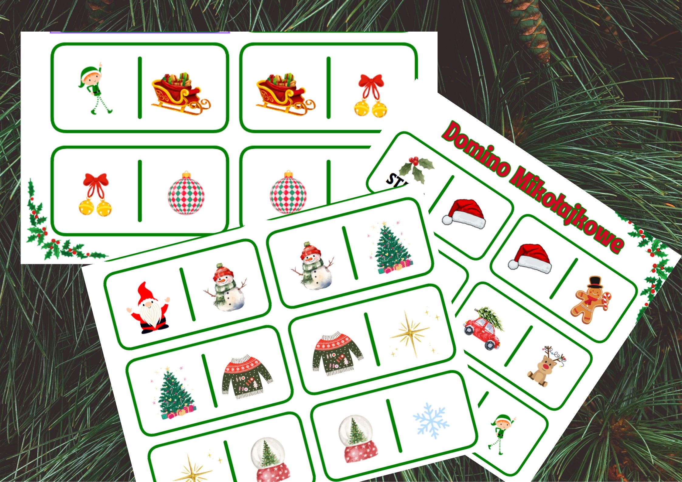Plik pdf zawiera 2 strony (20 kafelków z grafikami o tematyce świątecznej wzorowanych na tradycyjnym domino). Może być wykorzystywany w przedszkolu, podczas terapii lub zajęć na świetlicy.