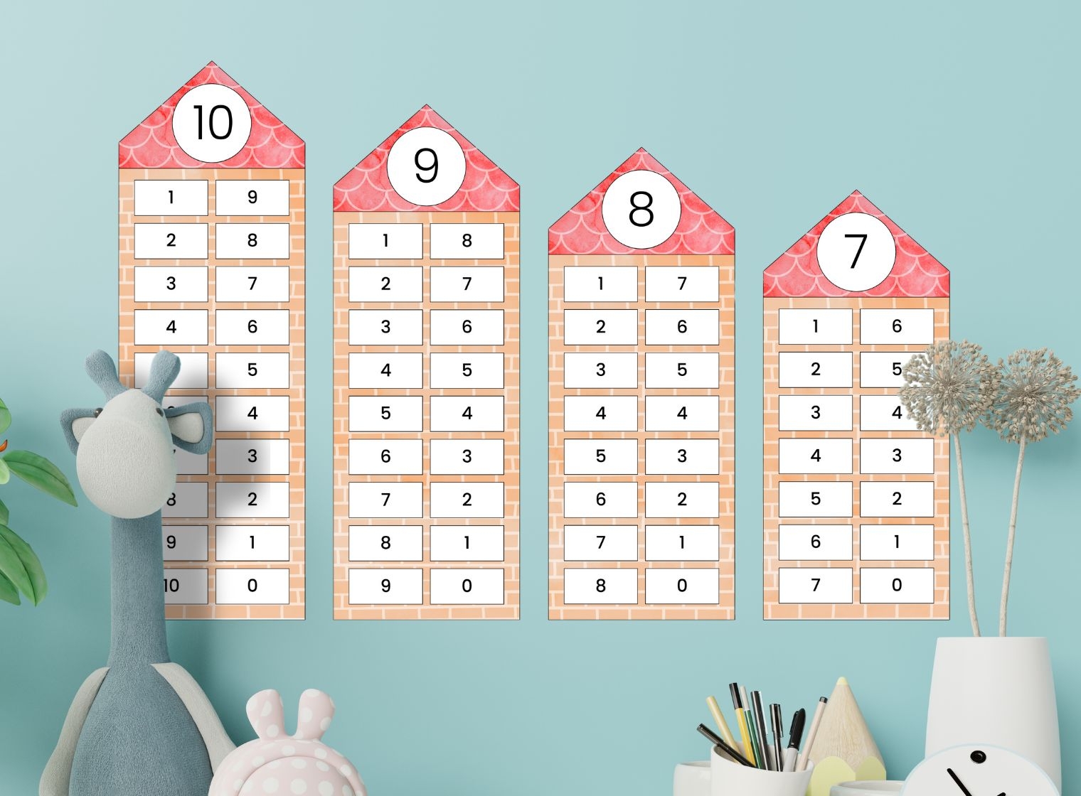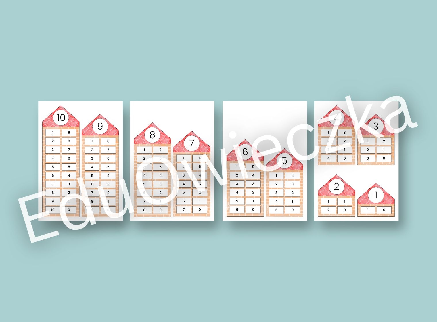 Grafiki można wykorzystać jako plakaty lub porozcinać w taki sposób, aby dziecko samo mogło ułożyć domki.