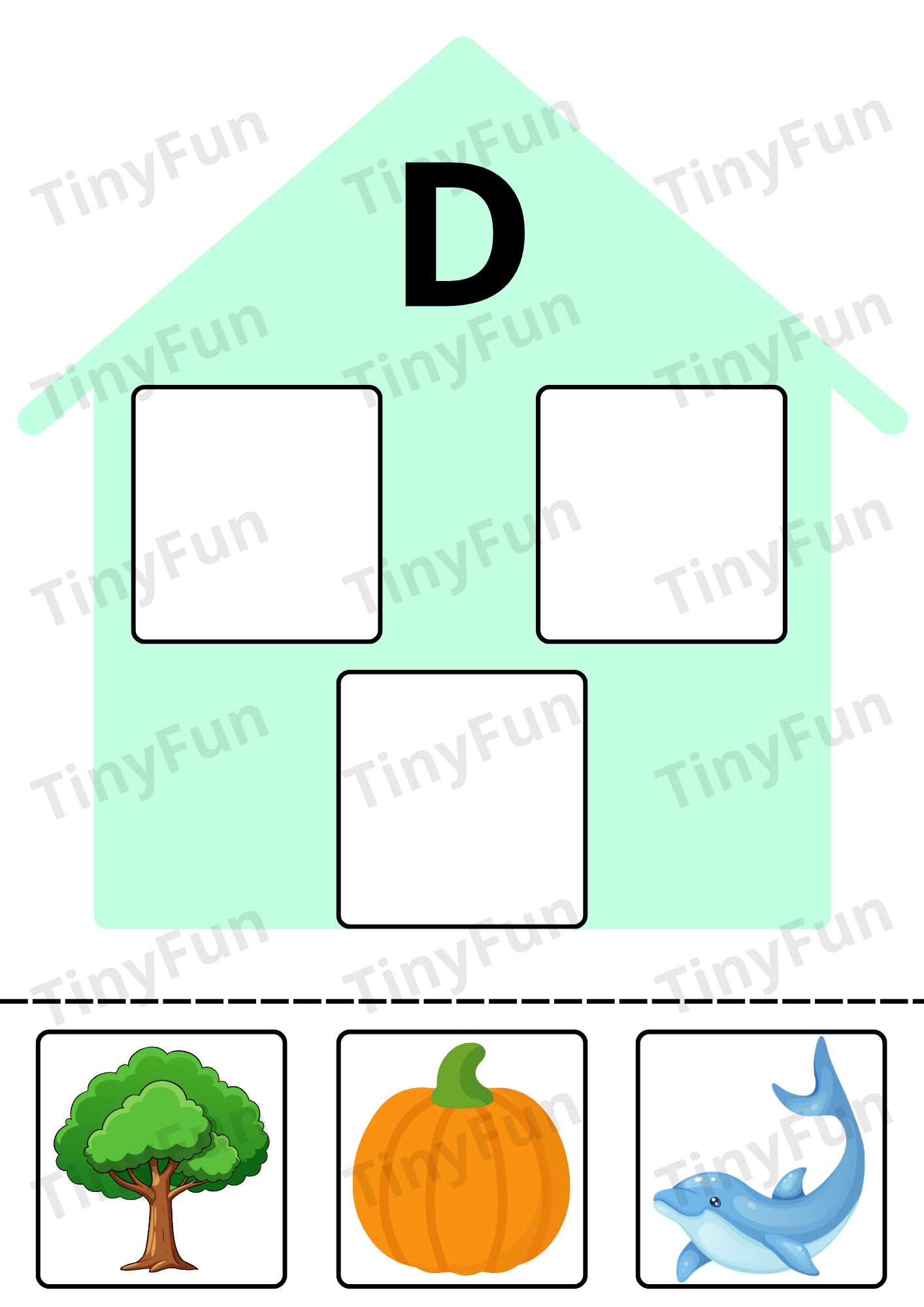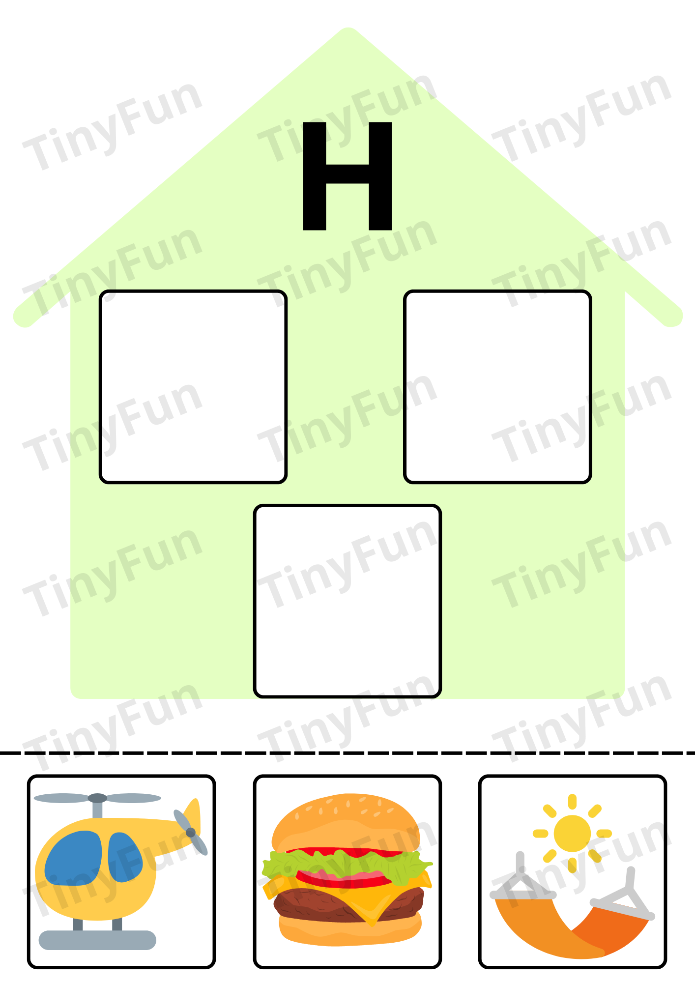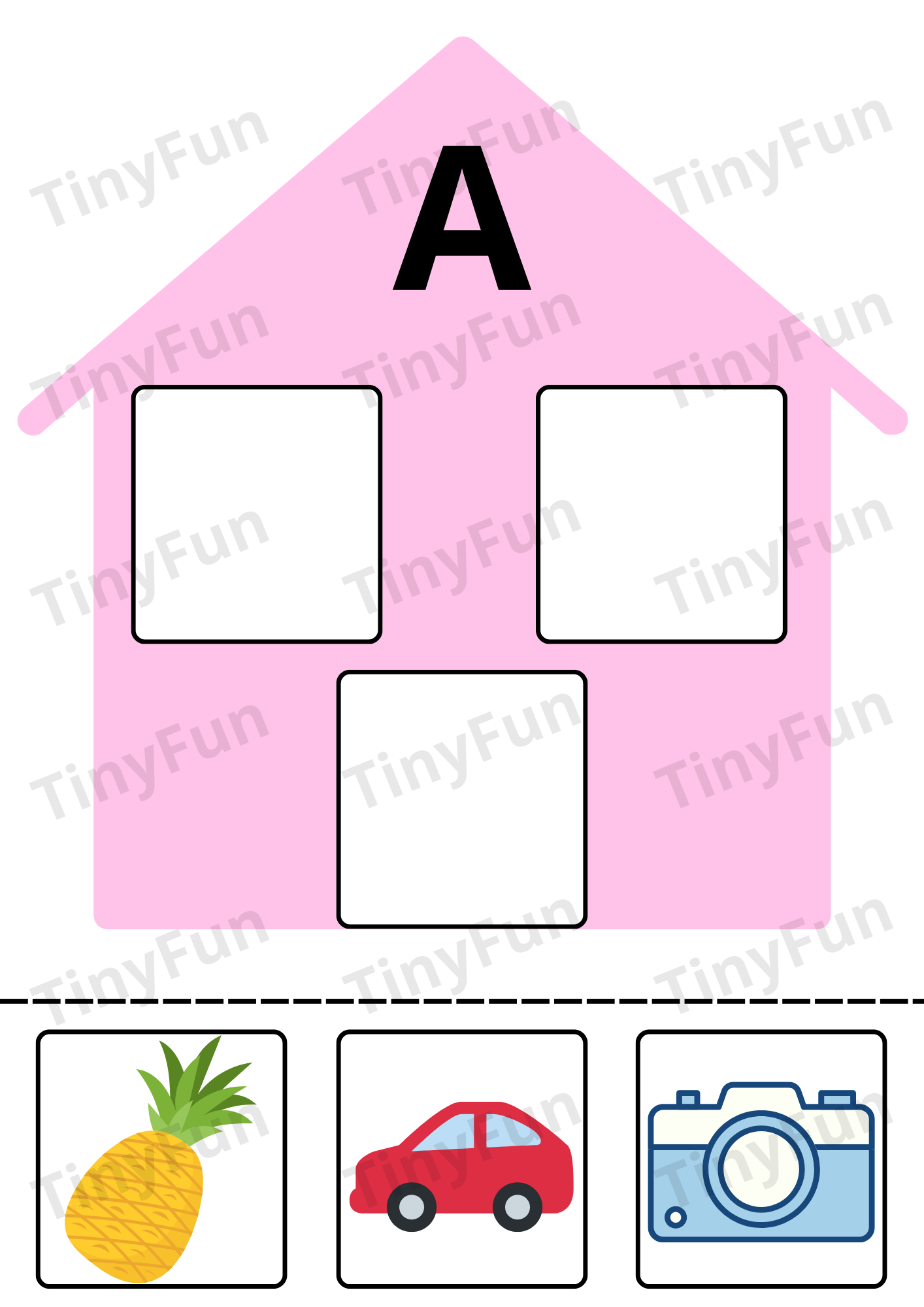 Wydrukuj domki z literami oraz odpowiadające im ilustracje 📄
