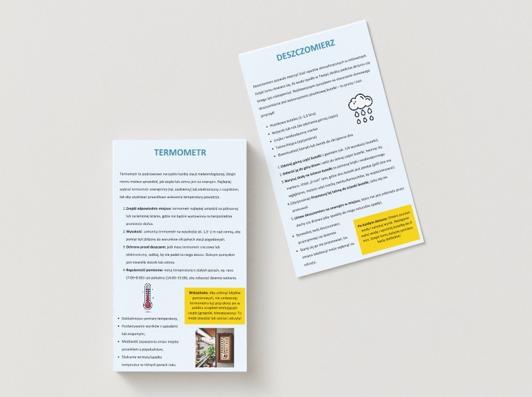 Dowiesz się, jakie proste i łatwo dostępne materiały oraz narzędzia są niezbędne, aby stworzyć termometr zewnętrzny, deszczomierz oraz wiatromierz.
