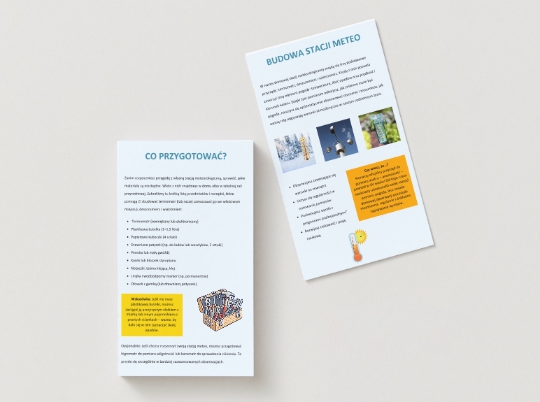 Zamów „Domową Stację Meteo” już teraz i zacznij przygodę z poznawaniem pogody! Dzięki naszym wskazówkom każdy deszcz, wiatr czy spadek temperatury stanie się cennym źródłem wiedzy i świetną zabawą dla całej rodziny.
