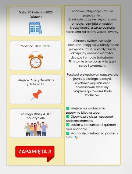 Doskonałe narzędzie do integracji, nauki emocji i wspólnego celebrowania kina – zarówno w klasie, jak i w domowym zaciszu! 💛