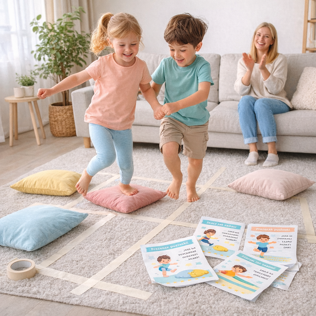 🎯 Zrób z domu salę zabaw pełną ruchu i radości! 💚 Rozwój, zabawa, śmiech – wszystko w jednym kolorowym pliku! Twój pokój może zamienić się w prawdziwy tor przygód, który ćwiczy ciało, rozbudza wyobraźnię i daje dzieciom ogromną frajdę! 👧 Dla kogo? Dla dzieci w wieku 3–10 lat – zarówno tych, które kochają ruch, jak i tych, które potrzebują odrobiny zachęty, by się rozruszać. To idealny materiał do: domu 🏠, przedszkola 👩‍🏫, świetlicy 🧩, zajęć ruchowych i integracyjnych 👯‍♀️. 🌈 CO ZYSKUJESZ? 🌟 Ruch w domu – bez siłowni, bez sprzętu, bez nudy! 🌟 Ćwiczenia motoryki dużej, równowagi i koncentracji. 🌟 Radość wspólnej zabawy w domu, przedszkolu czy na podwórku. 🌟 Gotowy materiał, który można wydrukować, zalaminować i używać wielokrotnie! 🌟 Kolorowe ilustracje, które motywują i rozśmieszają dzieci. 💡 DLACZEGO WARTO? ✅ Rozwija koordynację, gibkość i zwinność. ✅ Uczy planowania ruchu i cierpliwości. ✅ Pomaga rozładować energię w sposób bezpieczny i pozytywny. ✅ Wspiera integrację grupy i współpracę. ✅ Daje mnóstwo śmiechu, ruchu i satysfakcji! 🧠 WSKAZÓWKA OD AUTORKI 👉 Zrób z dziećmi zawody, ułóż tor z 3–6 kart i dodaj czas lub punkty! 👉 Każdego dnia możesz zmieniać układ przeszkód – dzięki temu zabawa nigdy się nie nudzi! 👉 Używaj tego materiału jako energizera w klasie, rozgrzewki na zajęciach lub przerwy ruchowej w domu. #DomowyTorPrzeszkód #ZabawaWRuchu #KartyRuchowe #EdukacjaPrzezZabawę #MotorykaDuża #AktywneDziecko #MateriałyDlaNauczycieli #PDFDoDruku #ZabawaWDomu #KreatywneZabawy #RuchToZdrowie #ZabawyRuchowe 💚 Zamień zwykły dzień w przygodę!