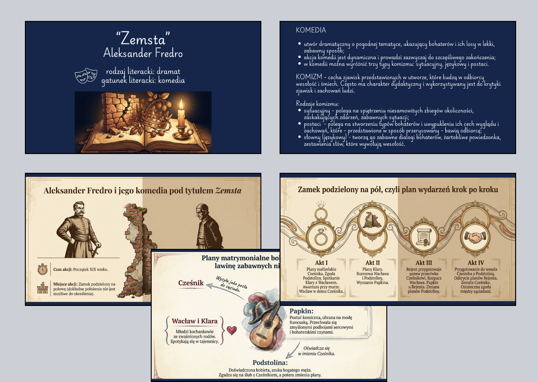 ✔ cechy komedii, tragedii i dramatu
