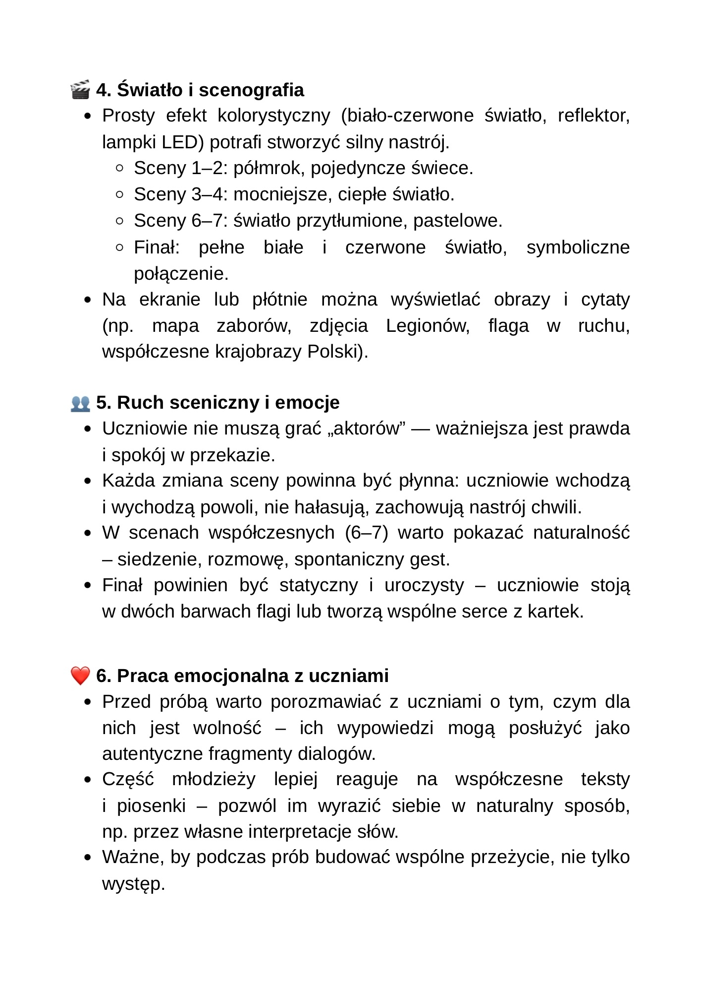 ✅ Wskazówki muzyczne, świetlne i emocjonalne