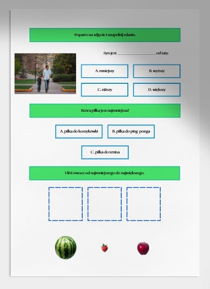 ✅ Porównywanie piłek, linijek, owoców i innych przedmiotów ⚽📏🍎