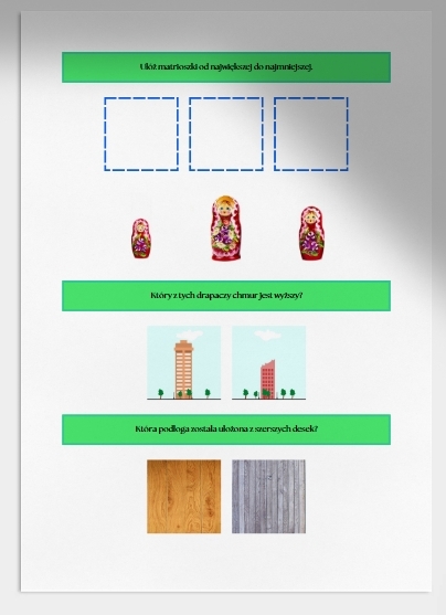 W środku znajdziesz zadania takie jak: ✅ Układanie matrioszek od największej do najmniejszej 🪆