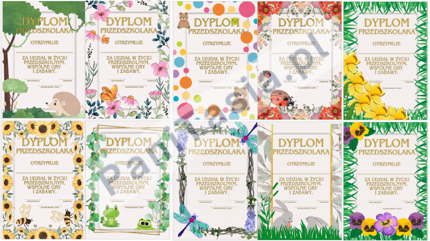 Dyplomy przedszkolaka na zakończenie roku szkolnego/przedszkolnego.