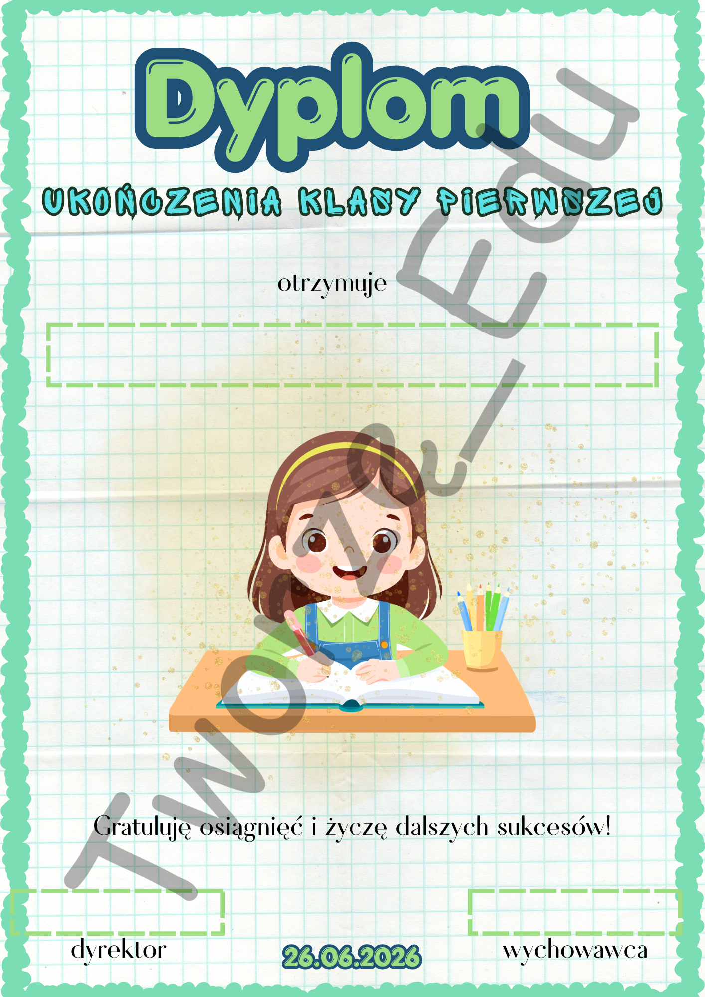 Dyplom ukończenia klasy pierwszej.