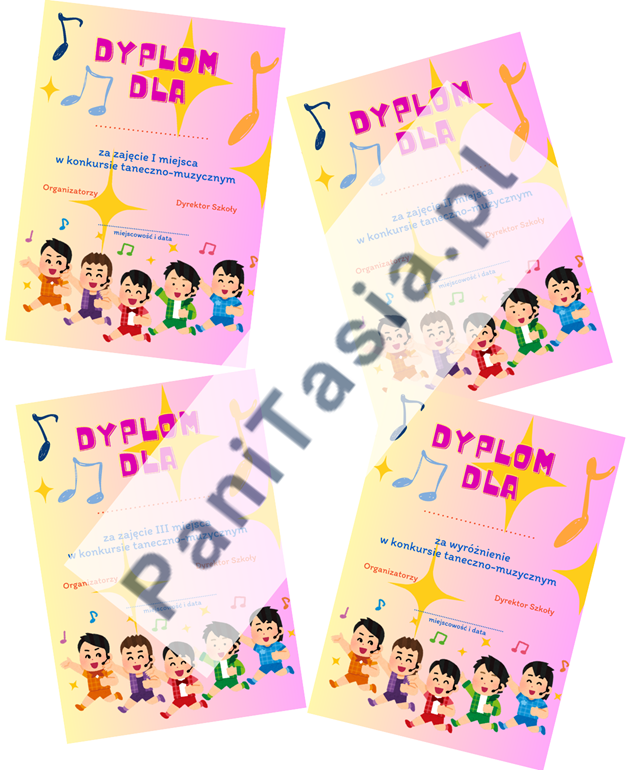 Gotowe do wydruku dyplomy na konkurs taneczno-muzyczny.