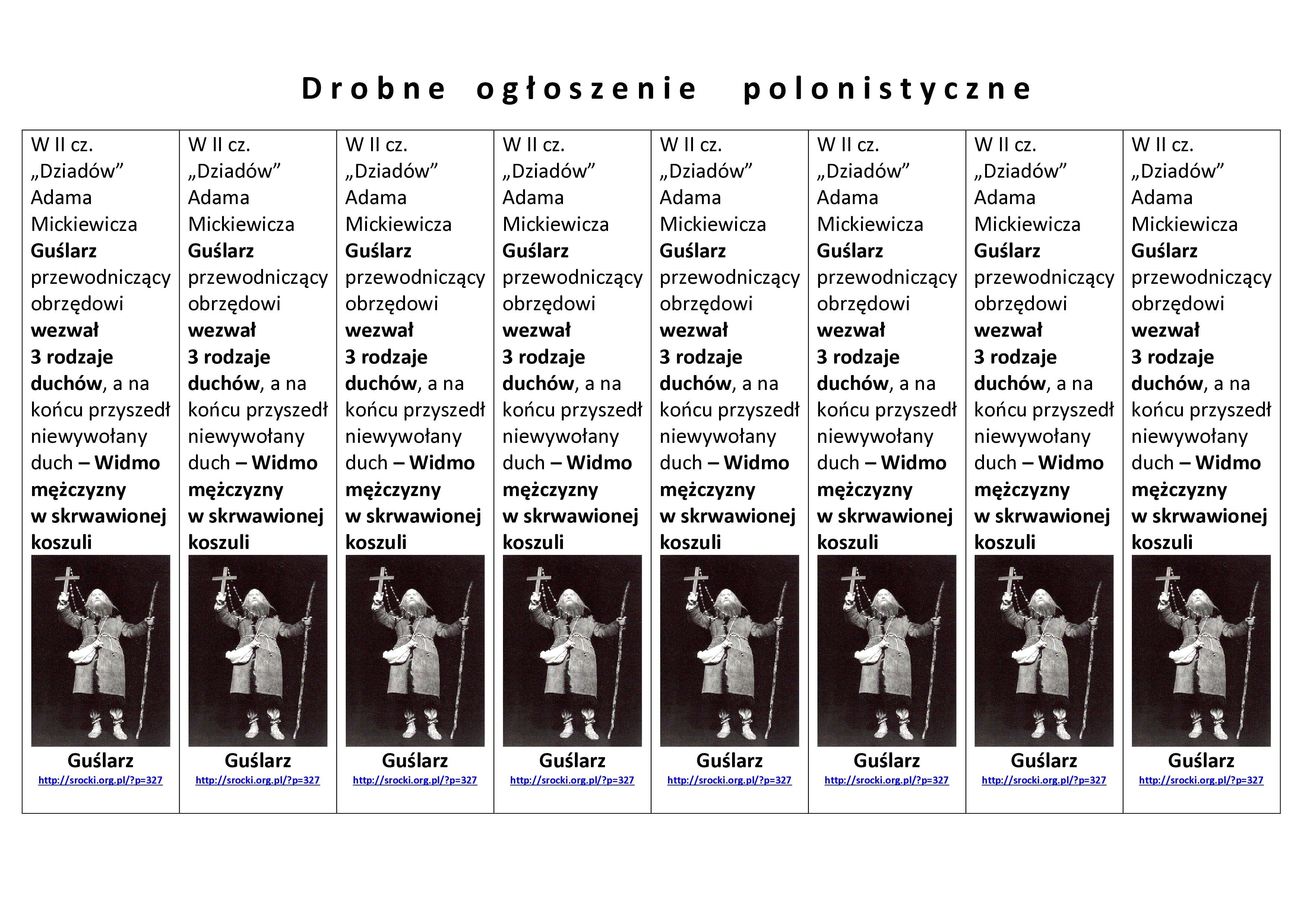 Polonistyczne ogłoszenie drobne - minipowtórka przed egzaminem 8-klasisty.