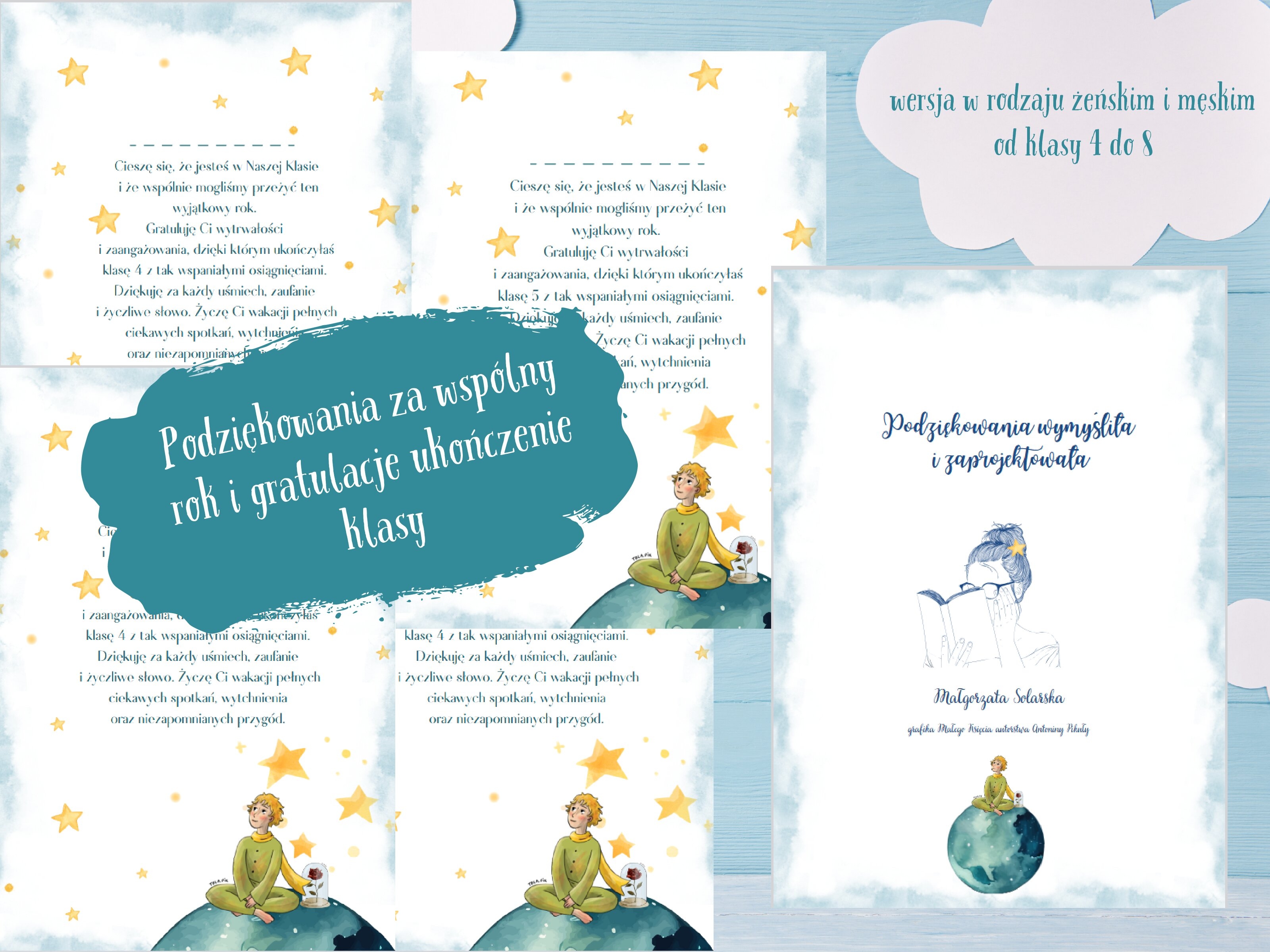 10 stron- wersja żeńska i męska do każdej klasy począwszy od 4 skończywszy na 8.
