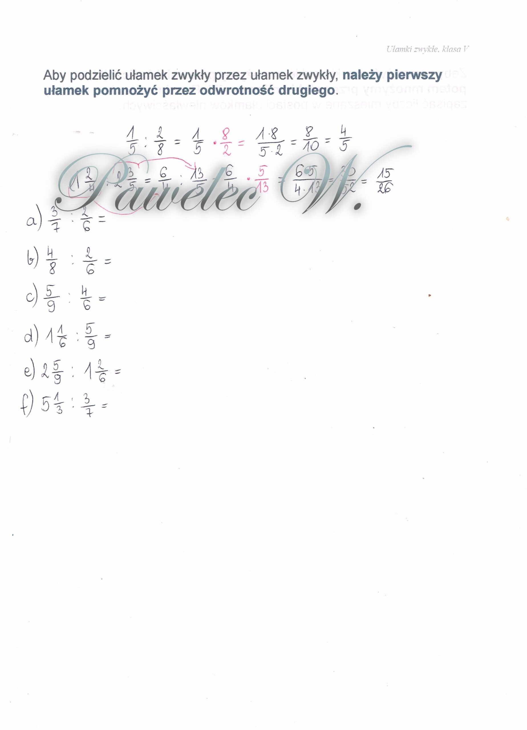 Karta pracy, która w szybki sposób pomoże zrozumieć i przećwiczyć dzielenie ułamków zwykłych.