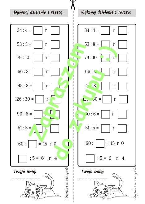 Dzielenie z resztą - szybka kartkówka (klasa 4-5)