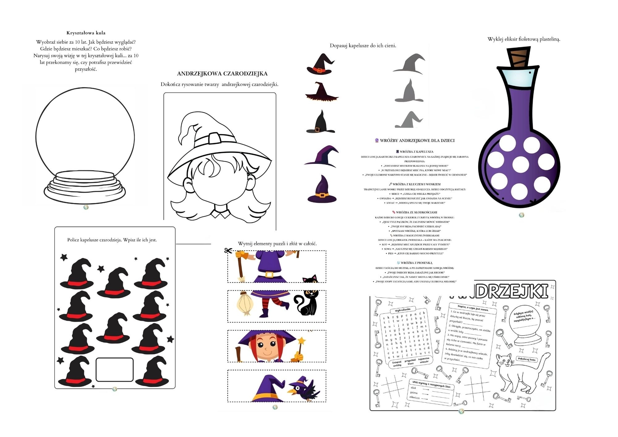 Zestaw magicznych materiałów edukacyjnych – idealny na zabawę andrzejkową w przedszkolu i klasach I–III!