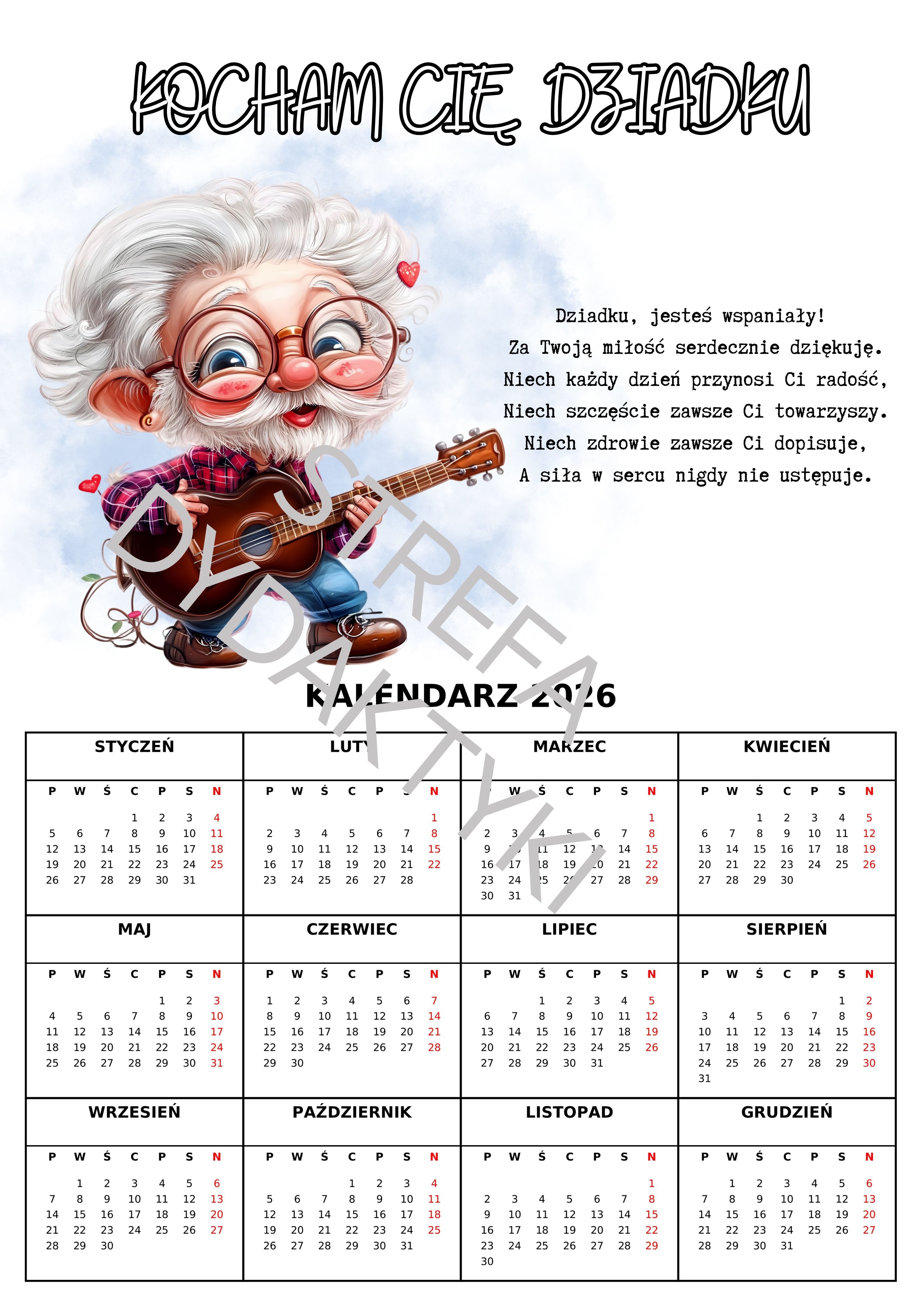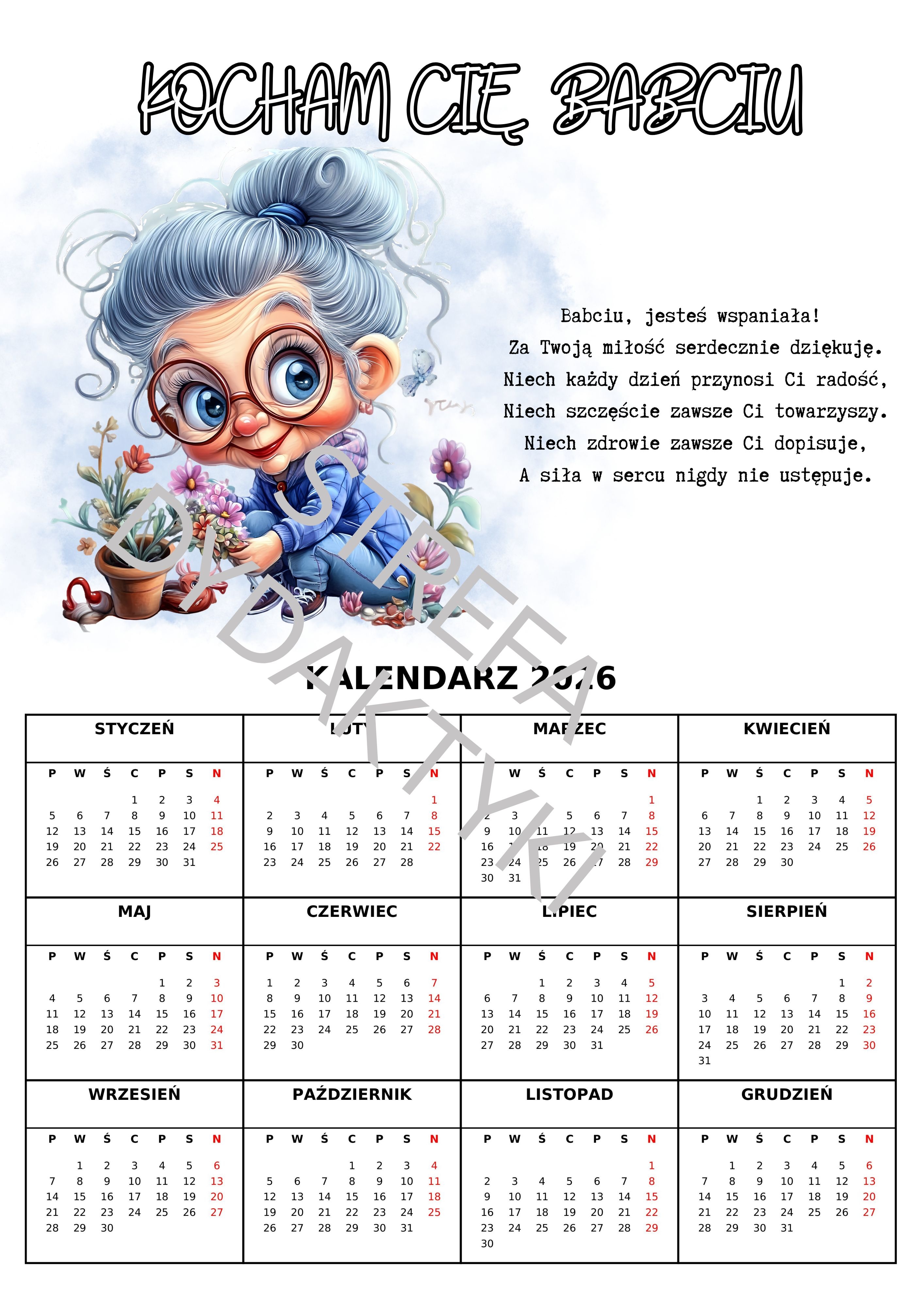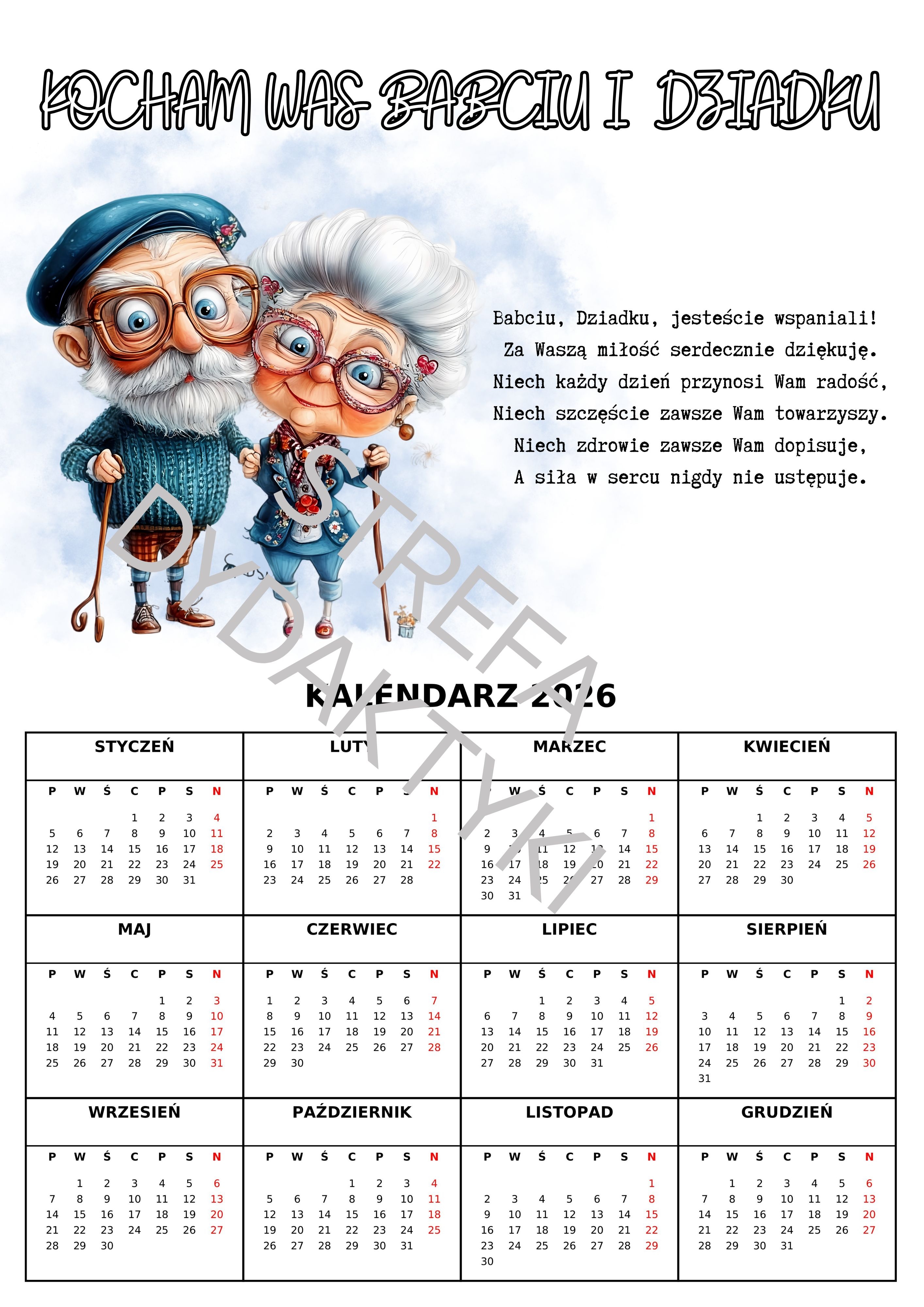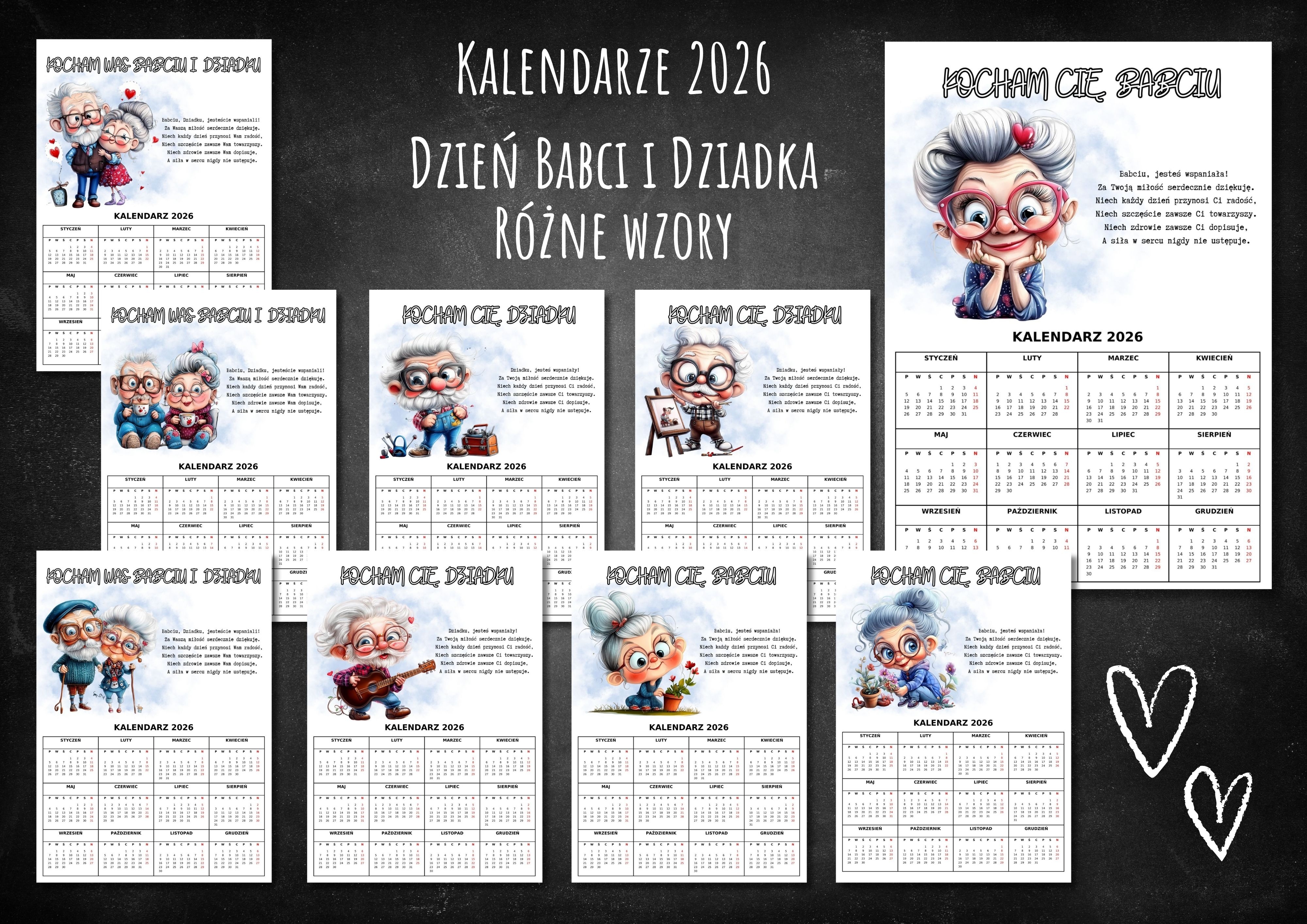 DZIEŃ BABCI I DZIADKA - kalendarz 2026 (33 wzory)
